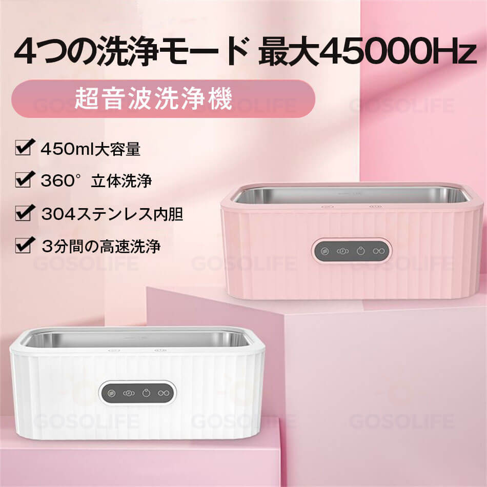 超音波洗浄機 メガネ洗浄器 超音波洗浄器 最大45000Hz 450ml大容量 4つの洗浄モード 超音波クリーナー 洗浄カゴ メガネ アクセサリー ジュエリー 眼鏡 入れ歯 指輪 腕時計