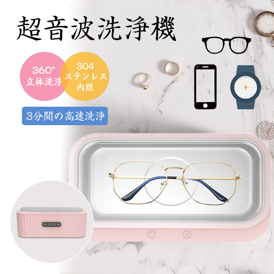 超音波洗浄機 メガネ洗浄器 超音波洗浄 ホワイト ピンク