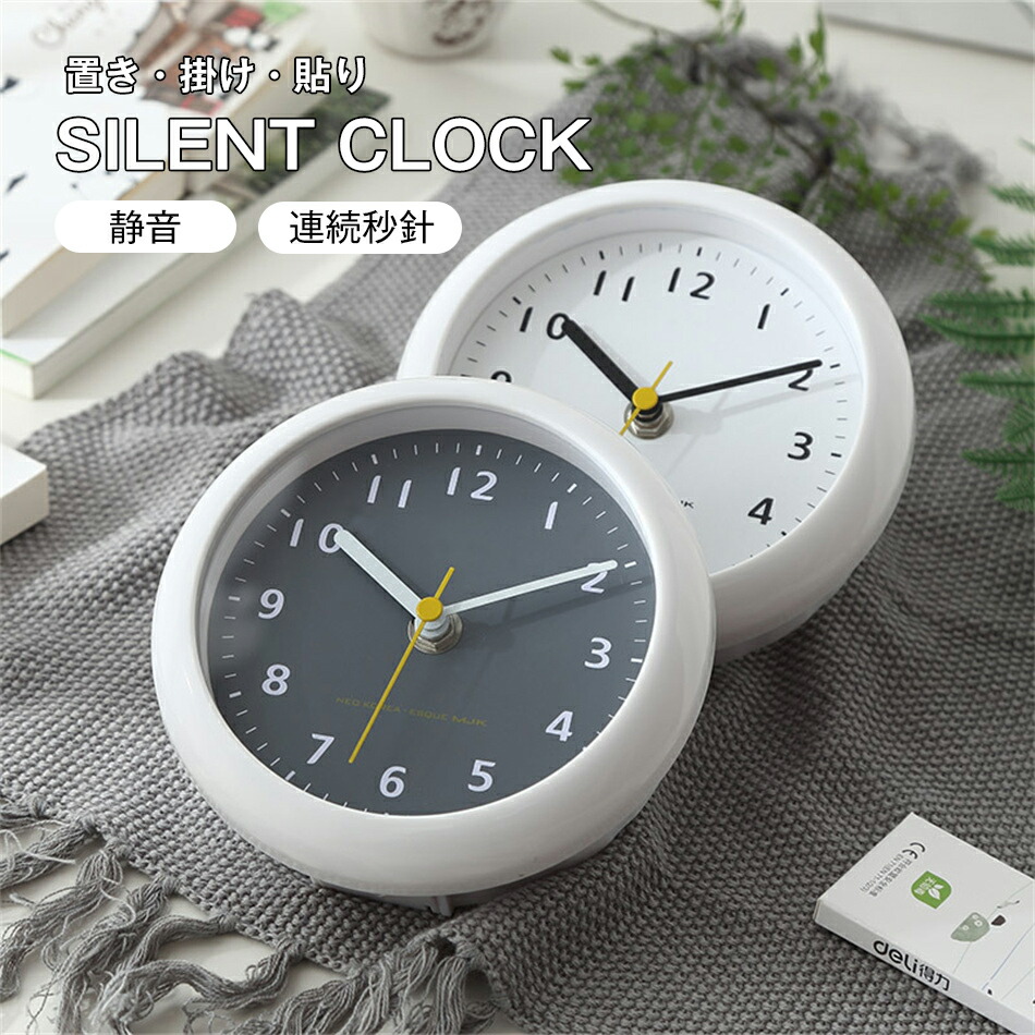 防水時計 置き 掛け 貼り お風呂 時計 風呂 防水 バスクロック シンプル 置き時計 おしゃれ リビング 掛け時計 吸盤 静音 連続秒針 壁掛け 韓国 丸時計 キッチン 時 電池式