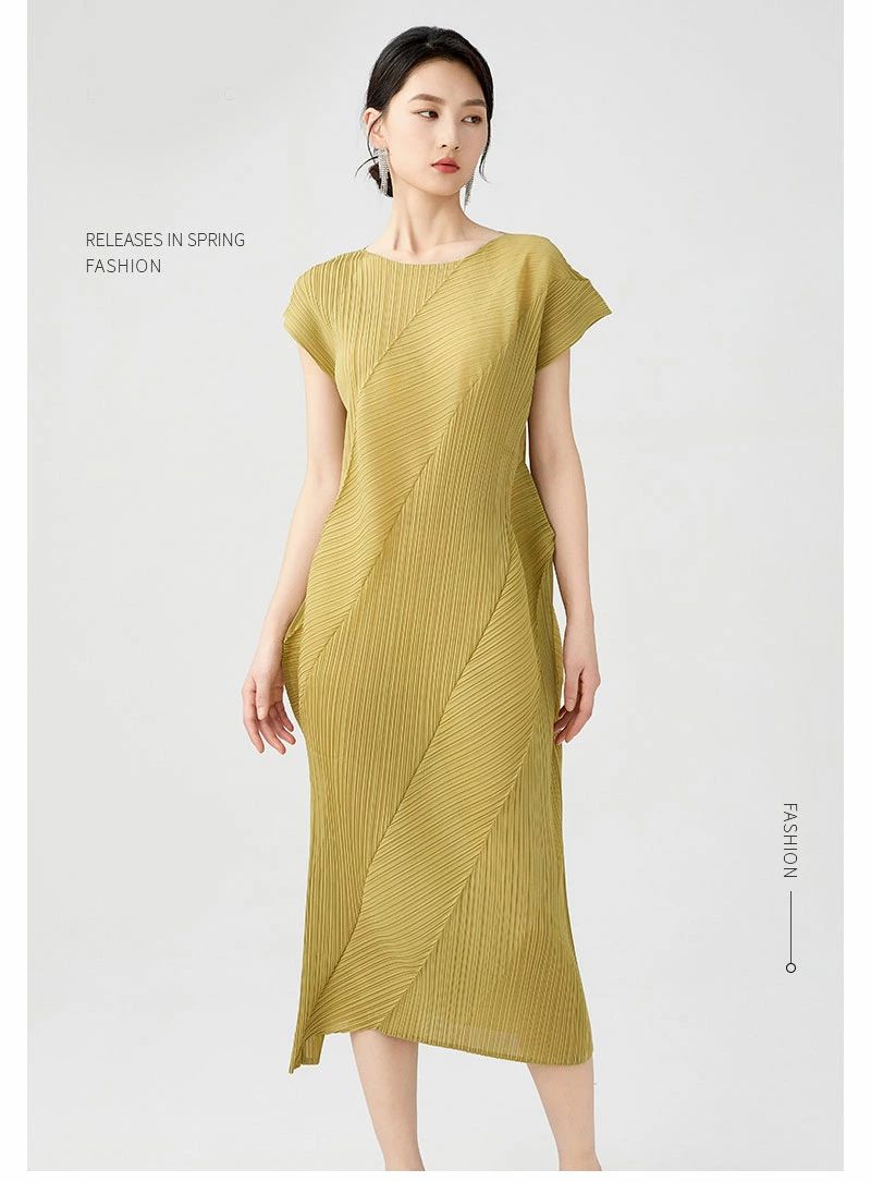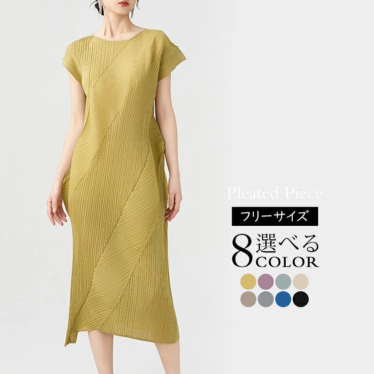 ワンピース レディース プリーツワンピ ワンピース 超目玉商品 イエロー パープル グレーブルー カーキ ベージュ ブルー グレー ブラック