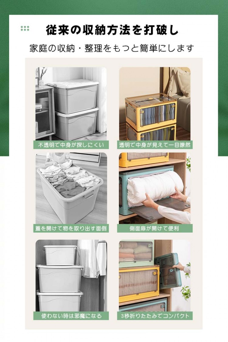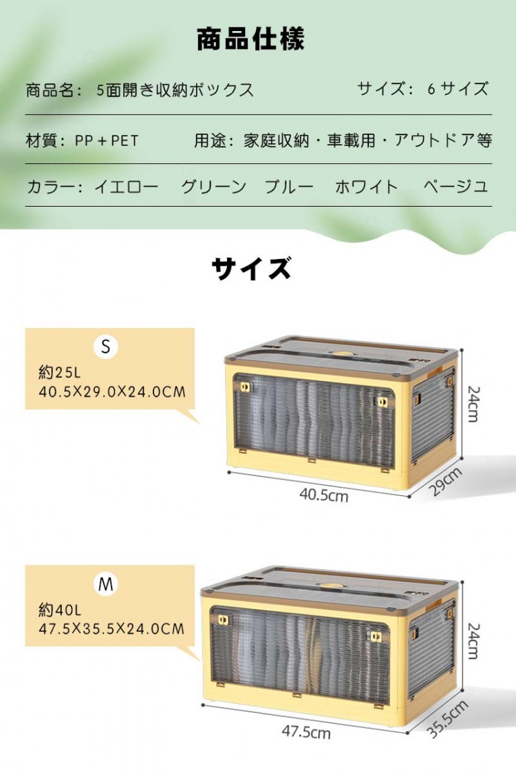 収納ケース 折り畳み 省スペース キャ S M L XL XXL XXXL イエロー グリーン ブルー ベージュ ホワイト 目隠しホワイト