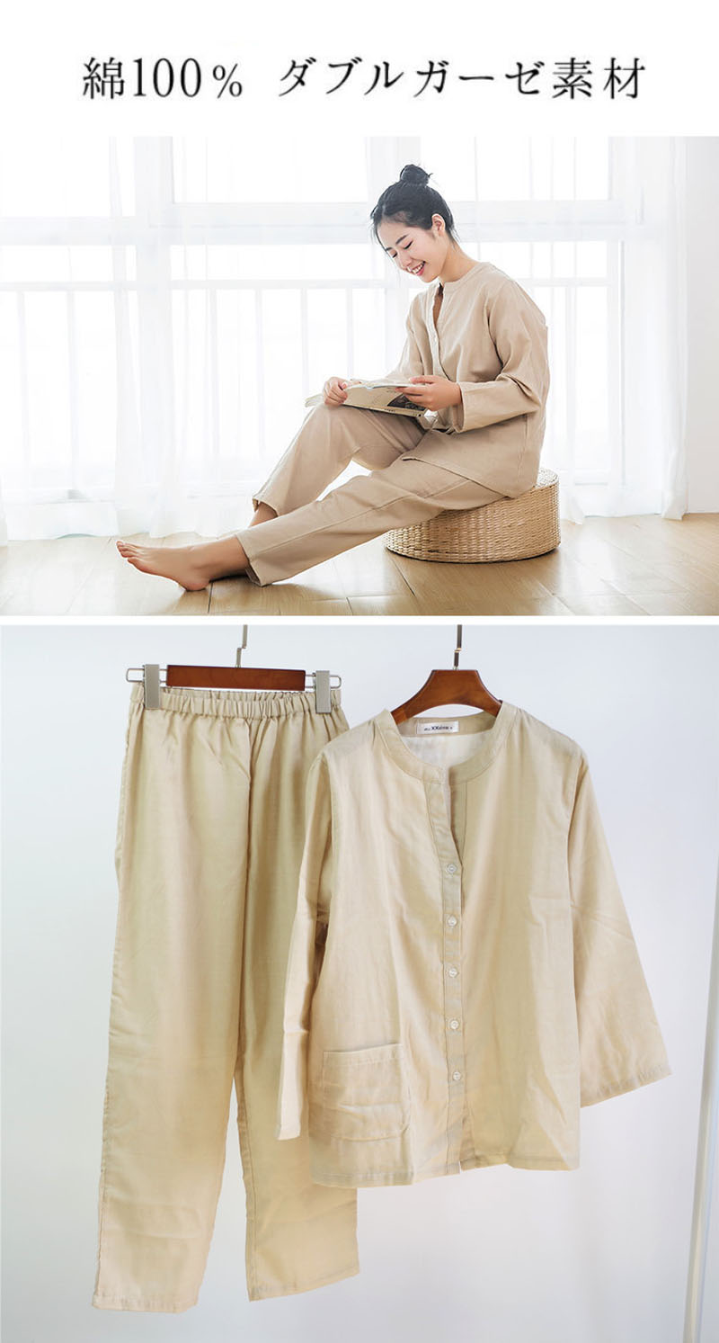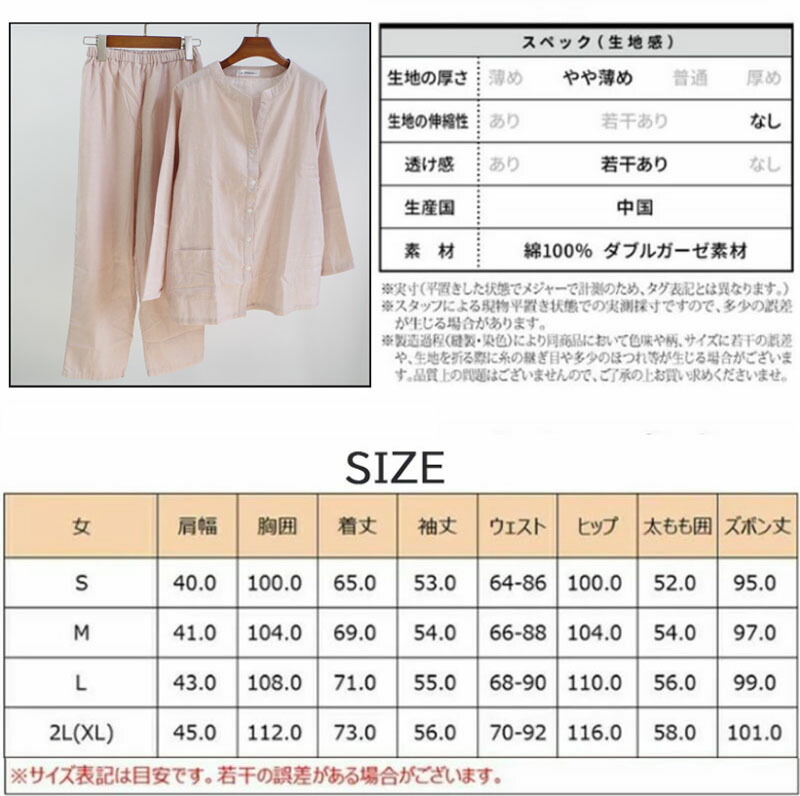 パジャマ レディース 二重ガーゼ ルー インナー 下着 ナイトウエア 新登場! 女S 女M 女L 女2L ピンク イエロー ブルー