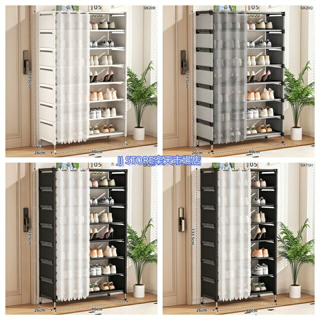 靴箱シューズラック 幅60 80 cm 4段 5段 6段 7段 8段 ホワイト-60cm ホワイト-80cm グレー-60cm グレー-80cm ブラック-60cm ブラック-80cm