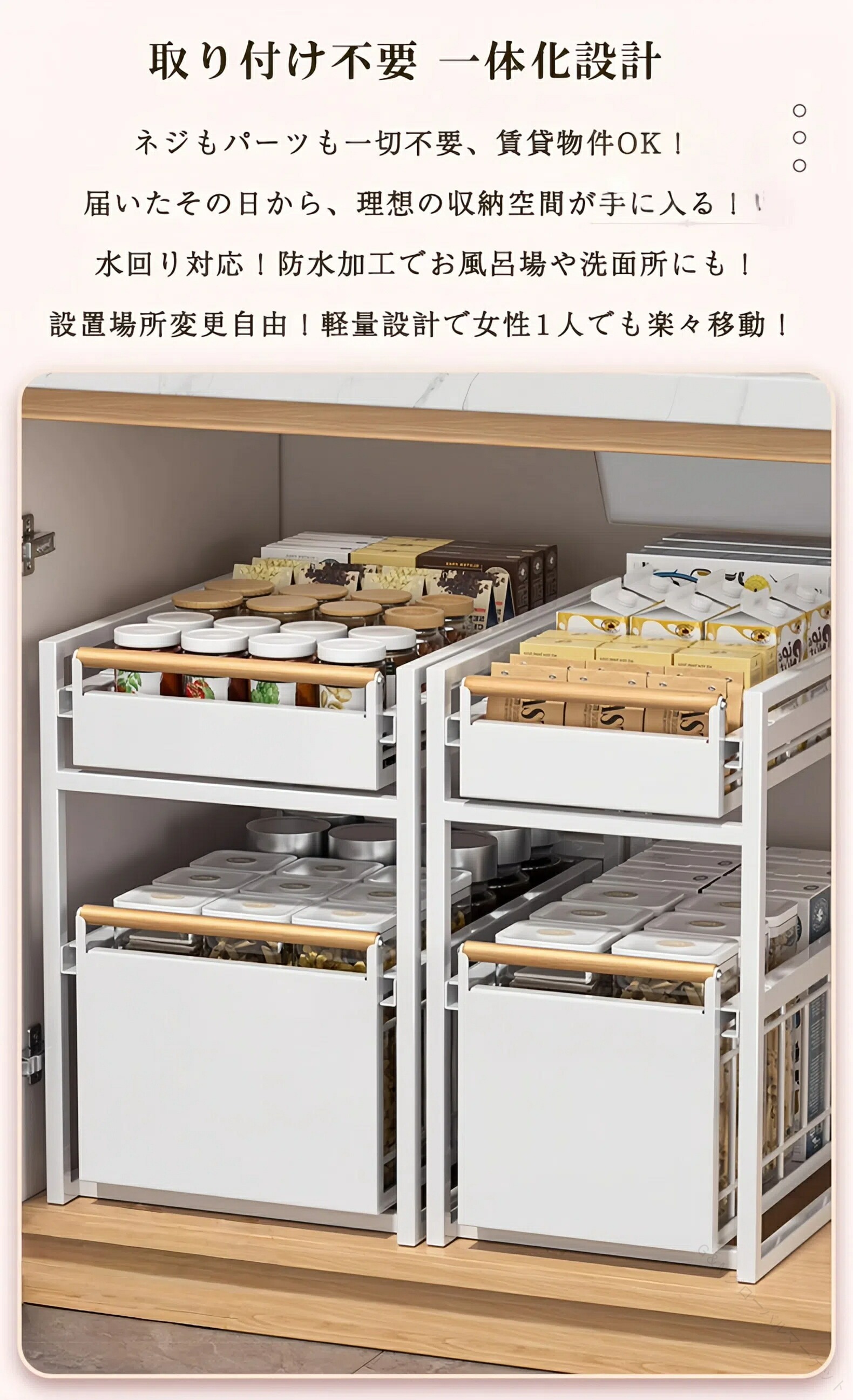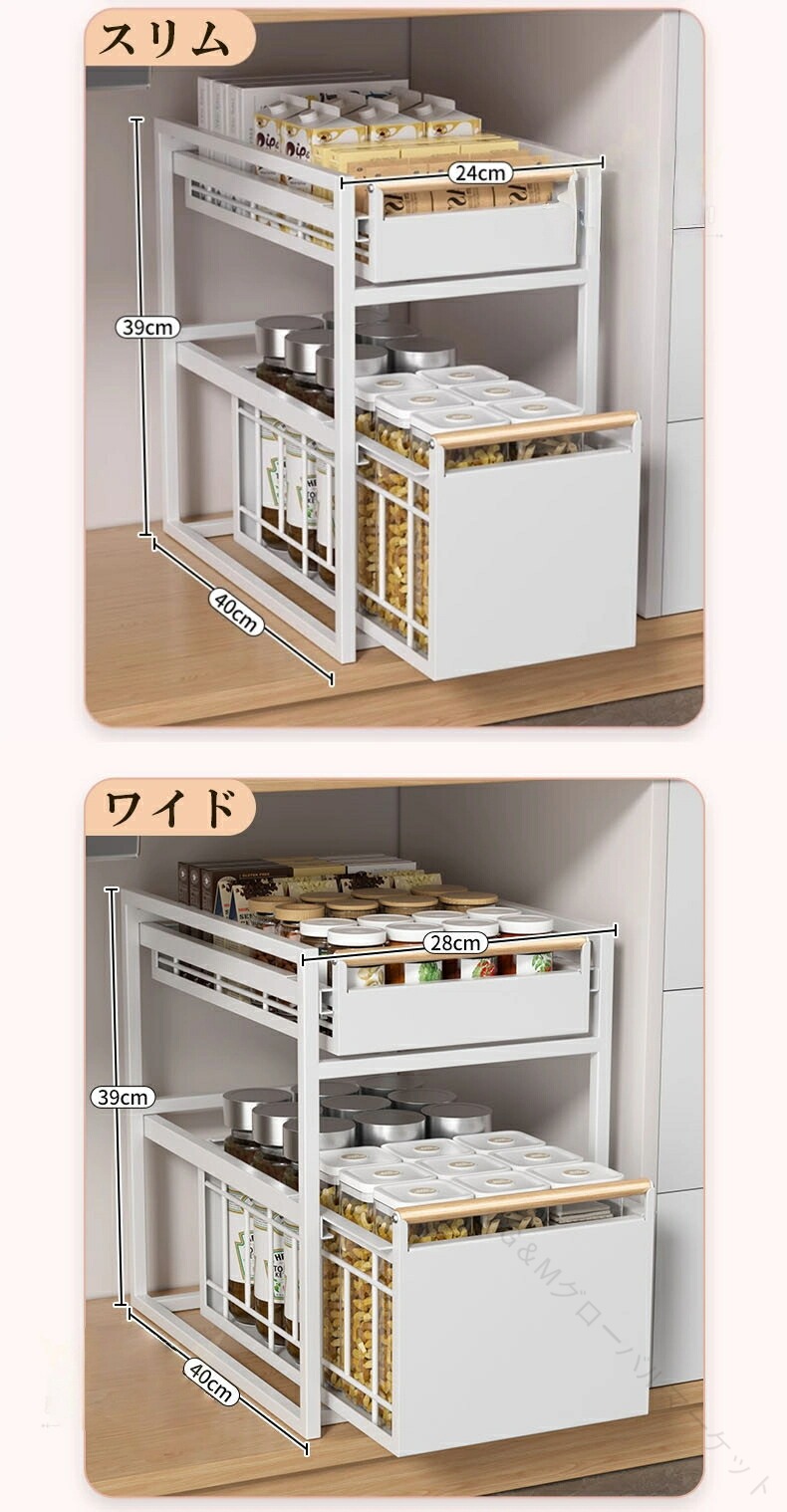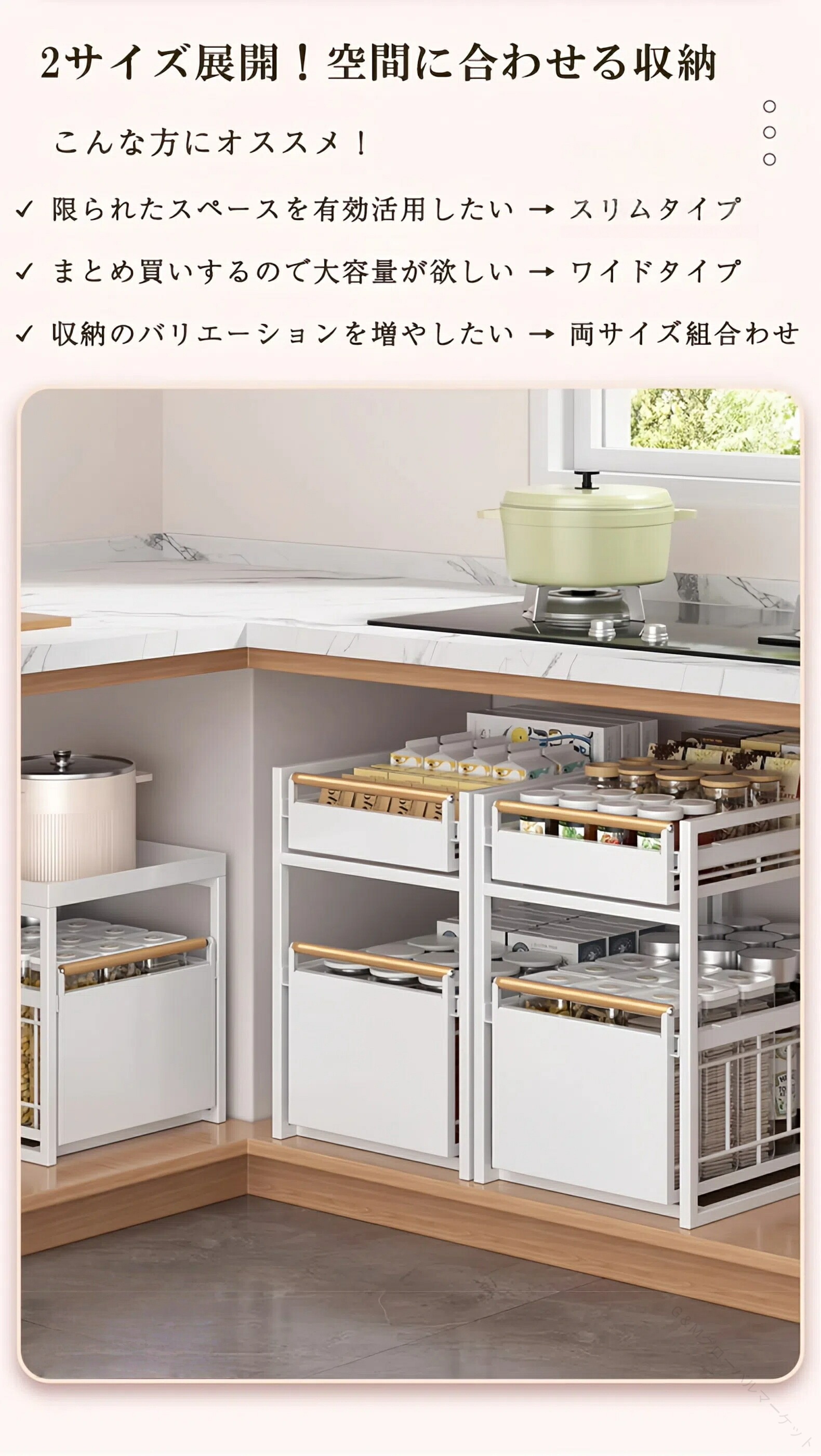 シンク下収納ラック 伸縮2段ラック ス スリム ワイド