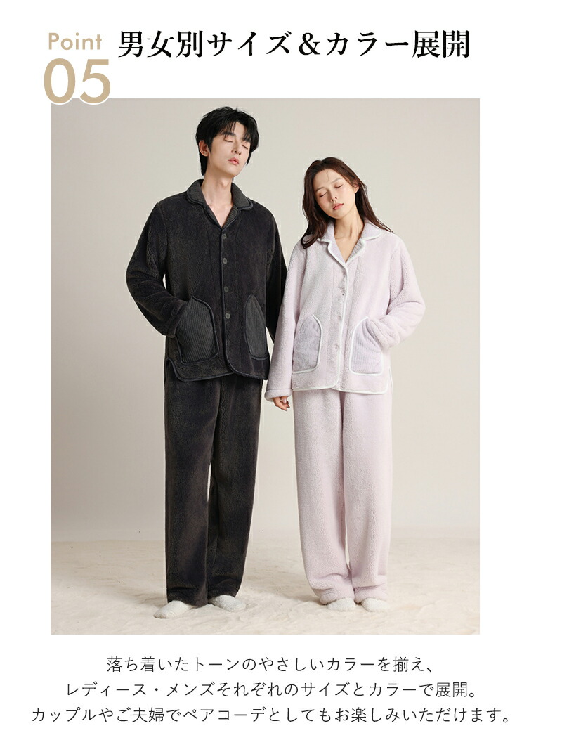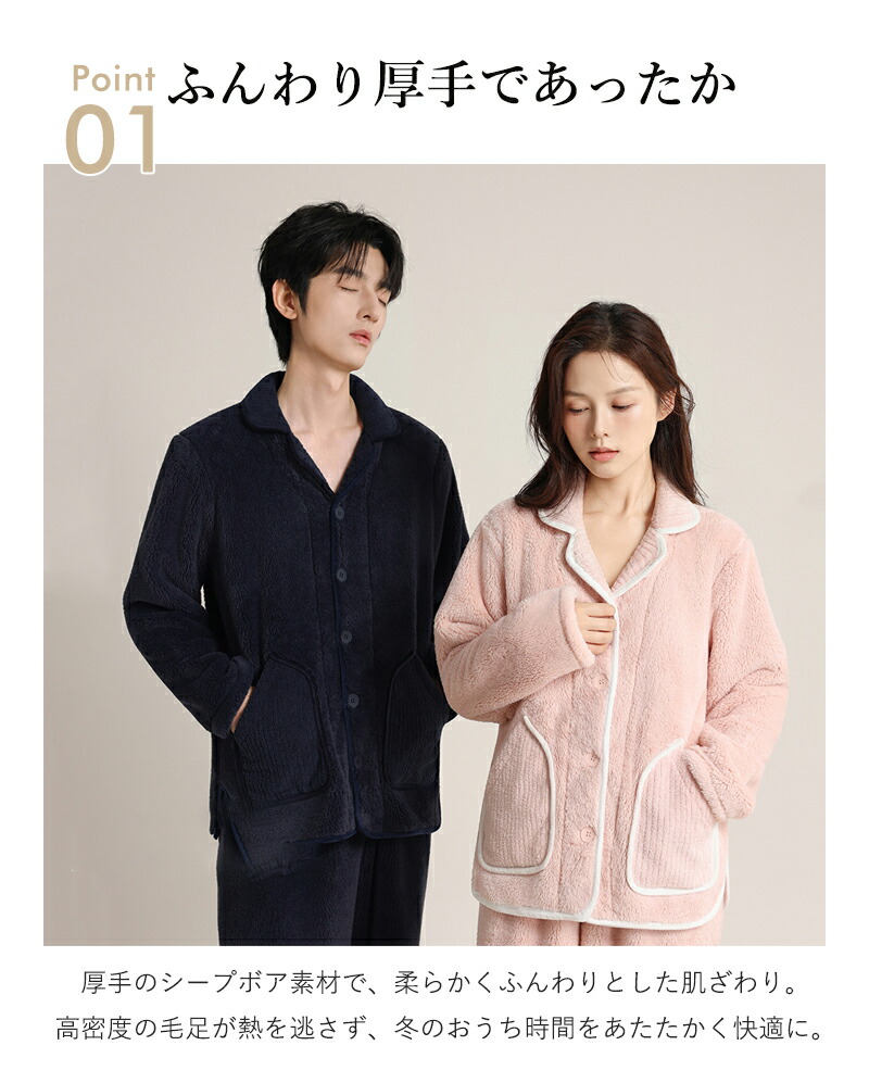 ルームウェア パジャマ レディース メンズ 上下セット 着る毛布 冬 あったか 冬用 長袖 厚手 フリース ボア シープボア マイクロファイバー 起毛 保温素材 暖かい 柔らかい ふわふわ ゆったり 軽量 快適 防寒 部屋着 リラックスウェア ナイトウェア 秋冬 新作 おしゃれ シンプル ナチュラル 上品 癒し系 北欧風 冷え対策 おうち時間 リビング テレワーク 冬の夜 お泊り 旅行 プレゼントにおすすめ 人気 ペア カップル ご夫婦 ペアルック おそろい バレンタイン ホワイトデー 冬ギフト 贈り物 プレゼント ギフト 誕生日プレゼント サイズ展開 M L XL XXL 大きいサイズ 前開きボタン 開襟デザイン セットアップ ポケット付き やさしい色 くすみカラー スモーキーカラー ニュアンスカラー アイボリー ラベンダー ピンク ネイビー チャコール グレー