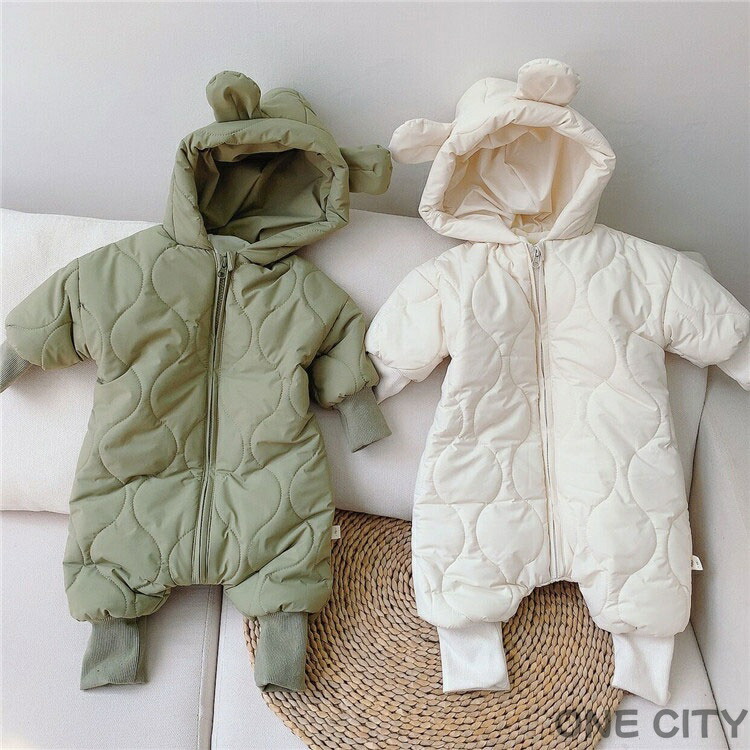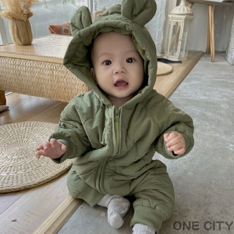 ロンパース カバーオール 防寒防風ジャ ベビー ベビー服 ファッション カバーオール ロンパース 通販 グリーン ベージュ 66cm 73cm 80cm 90cm