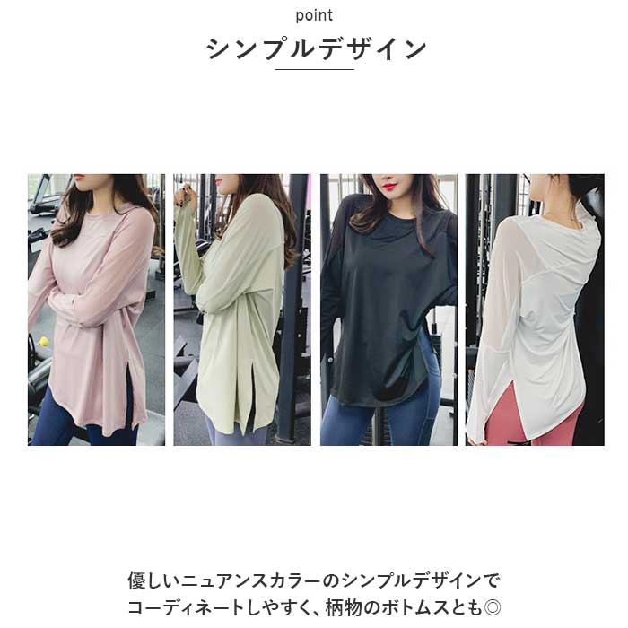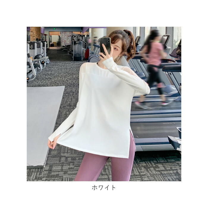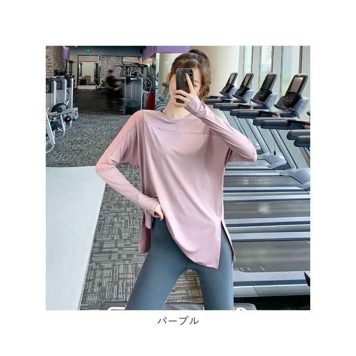 ヨガトップス レディース 長袖Tシャツ スポーツ アウトドア 豊富な品揃え S M L XL グリーン パープル ブラック ホワイト