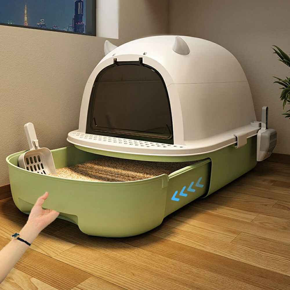猫トイレ ドーム型 引き出し式 大型猫 猫用品 トイレ用品 トレーナー トイレ容器 続々入荷中 イエロー グレー グリーン