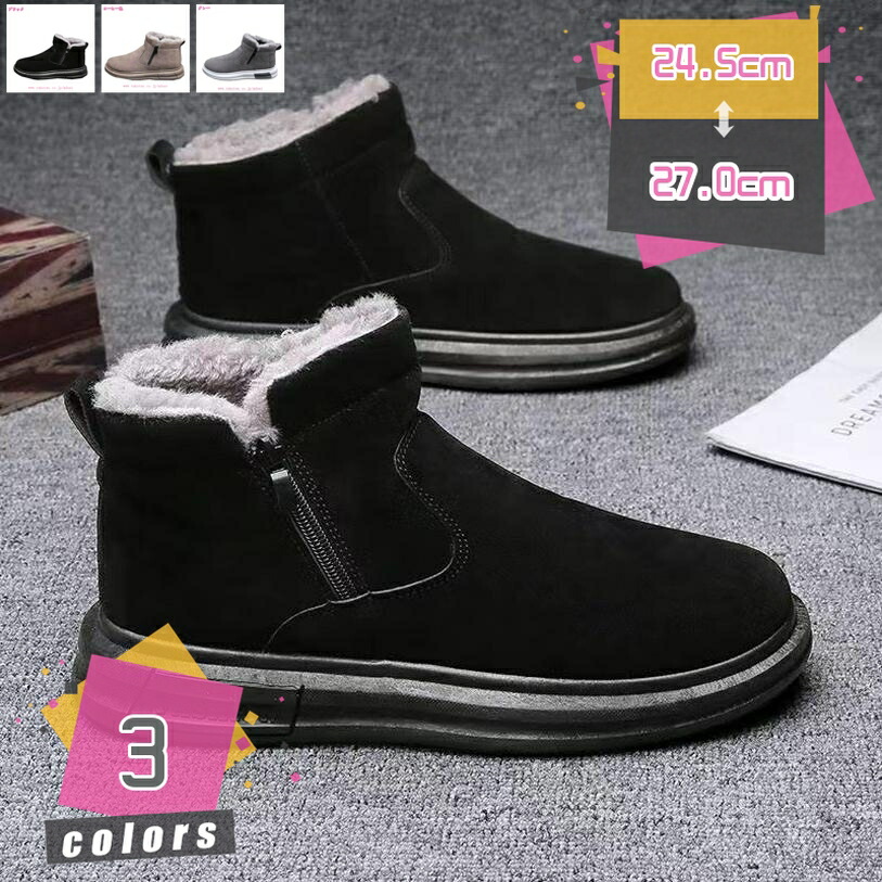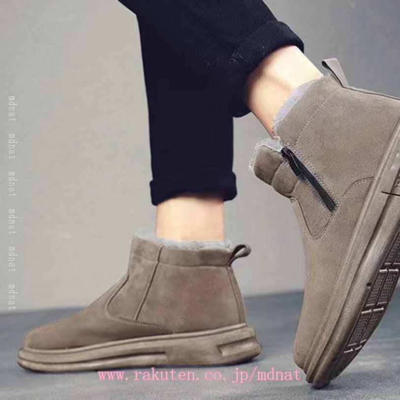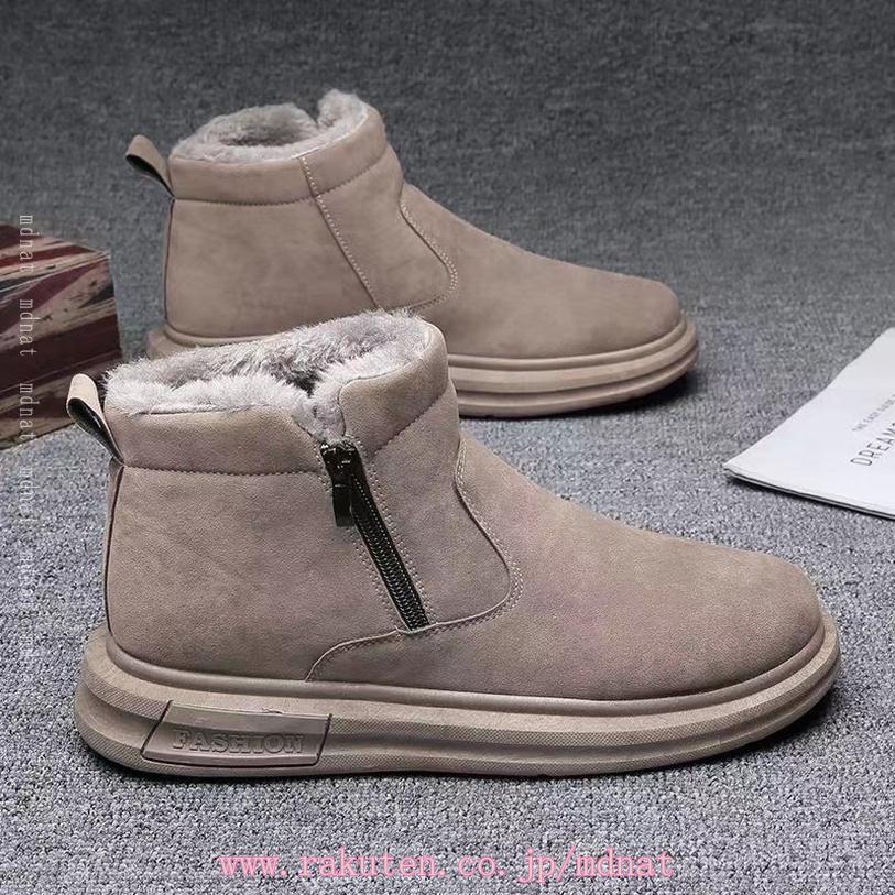スノーブーツ メンズ ジッパー ショート スノーシューズ ジッパース スエード 裏起毛 防寒 防水 防滑 ムートンブーツ 保暖 ブーツ カジュアル 冬用 雪靴 綿靴 トレッキング 裏ボア保温