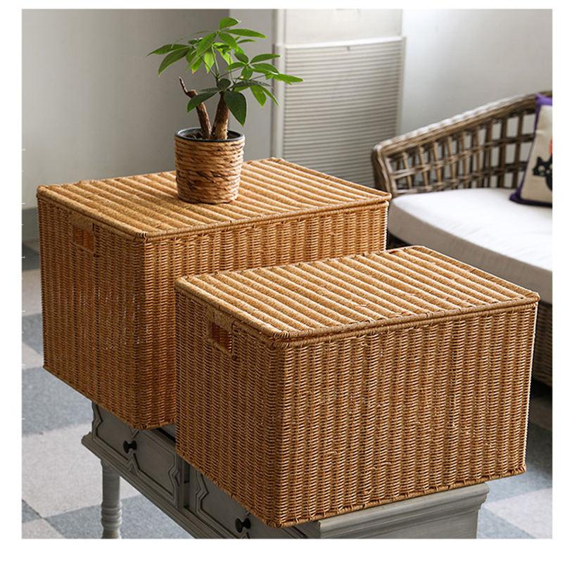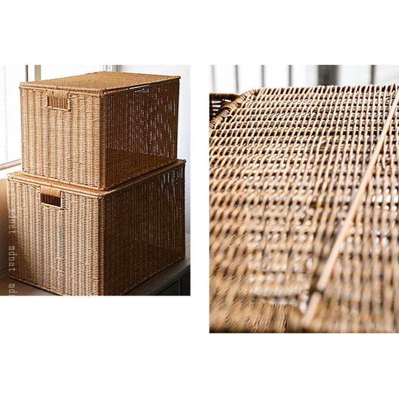収納 小物入れ フタ付きバスケット 蓋付き ナチュラル 小物収納 バスケット 編みかご 籐かご 収納かご 防塵 収納バスケット 収納ケース 和風 かご 雑貨収納 キッ おしゃれ
