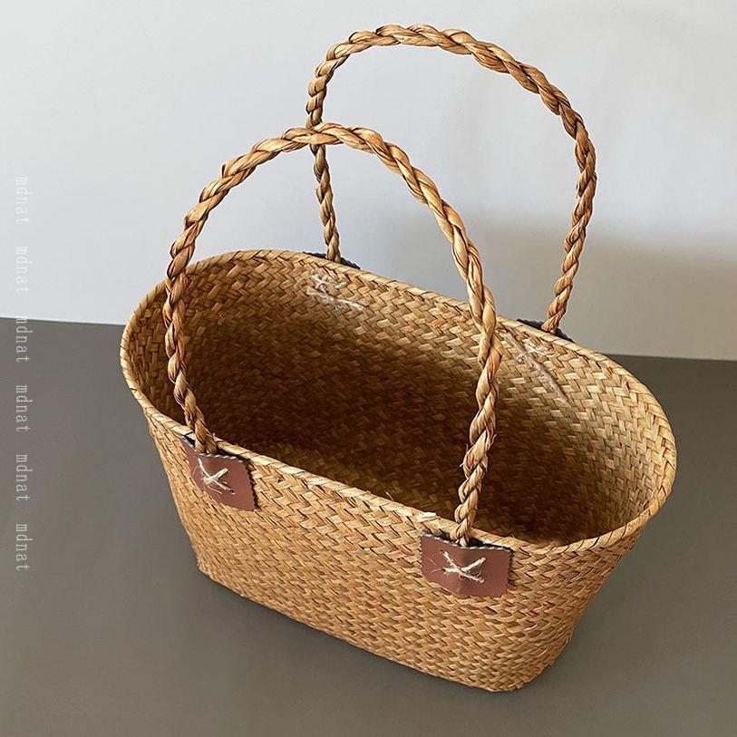 小物入れ ラタン 籐 バスケット バッグ かご 籠バッグ かごバッグ 花編み 市場かご 田園風 ピクニックバッグ 籐かごバッグ 買い物かご 整理バスケット 収納