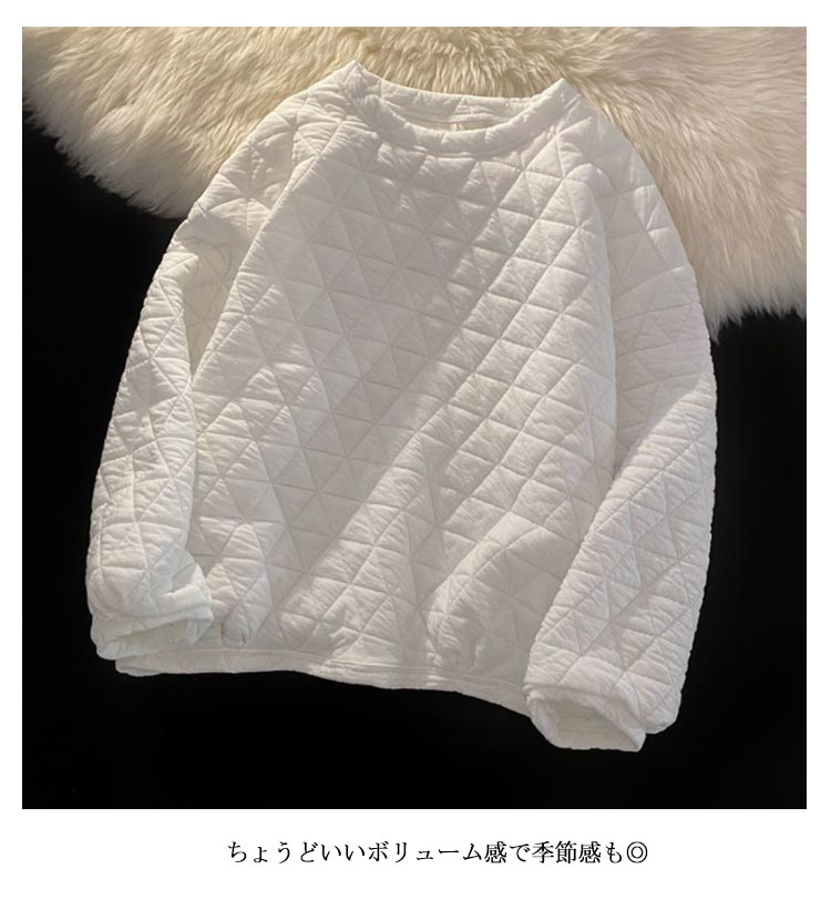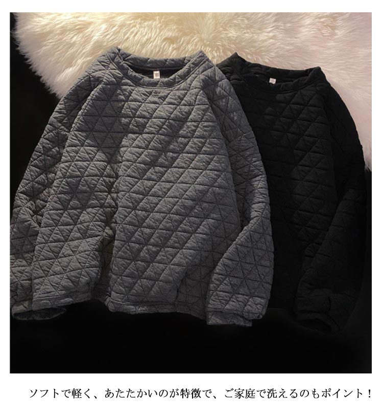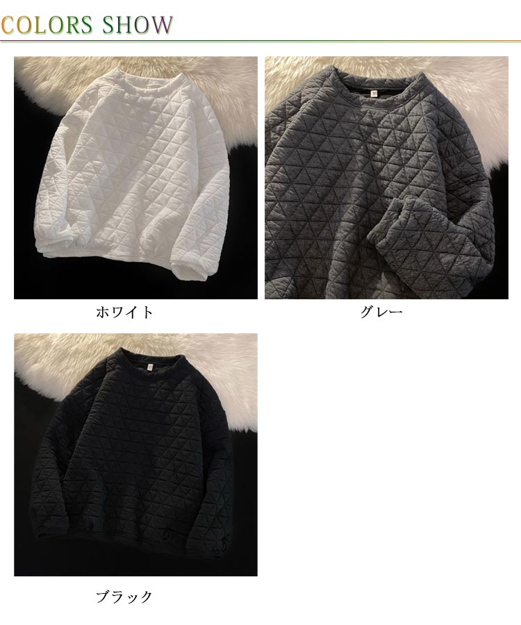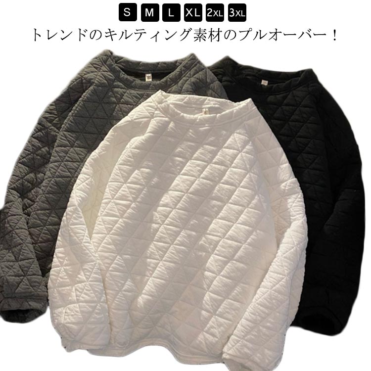 プルオーバートップス キルティング 長 トップス スウェット トレーナー 通販 ホワイト ブラック グレー S M L XL 2XL 3XL
