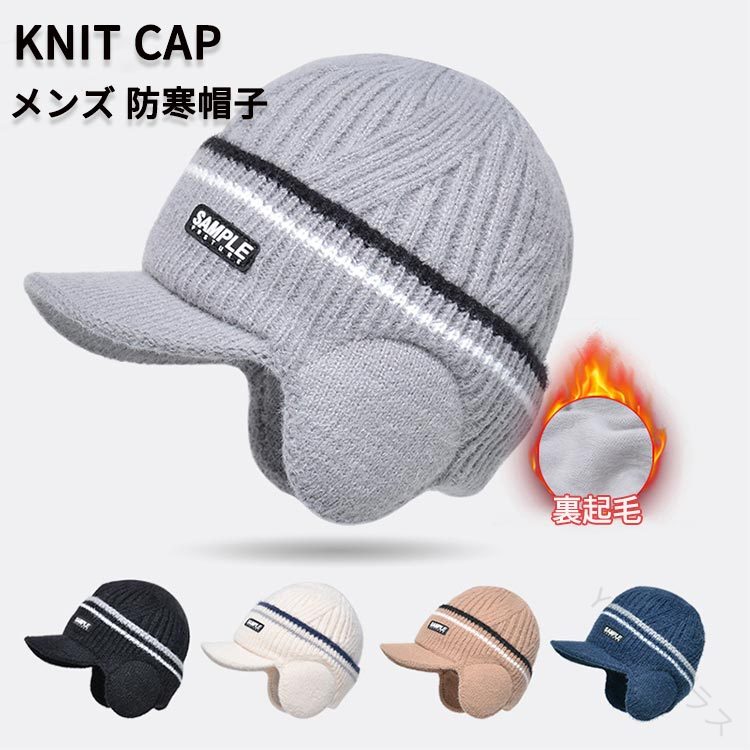 ニット帽 メンズ 耳あて付き つば付き バッグ 小物 ブランド雑貨 人気 カーキ ネイビー グレー ブラック ベージュ ブラウン