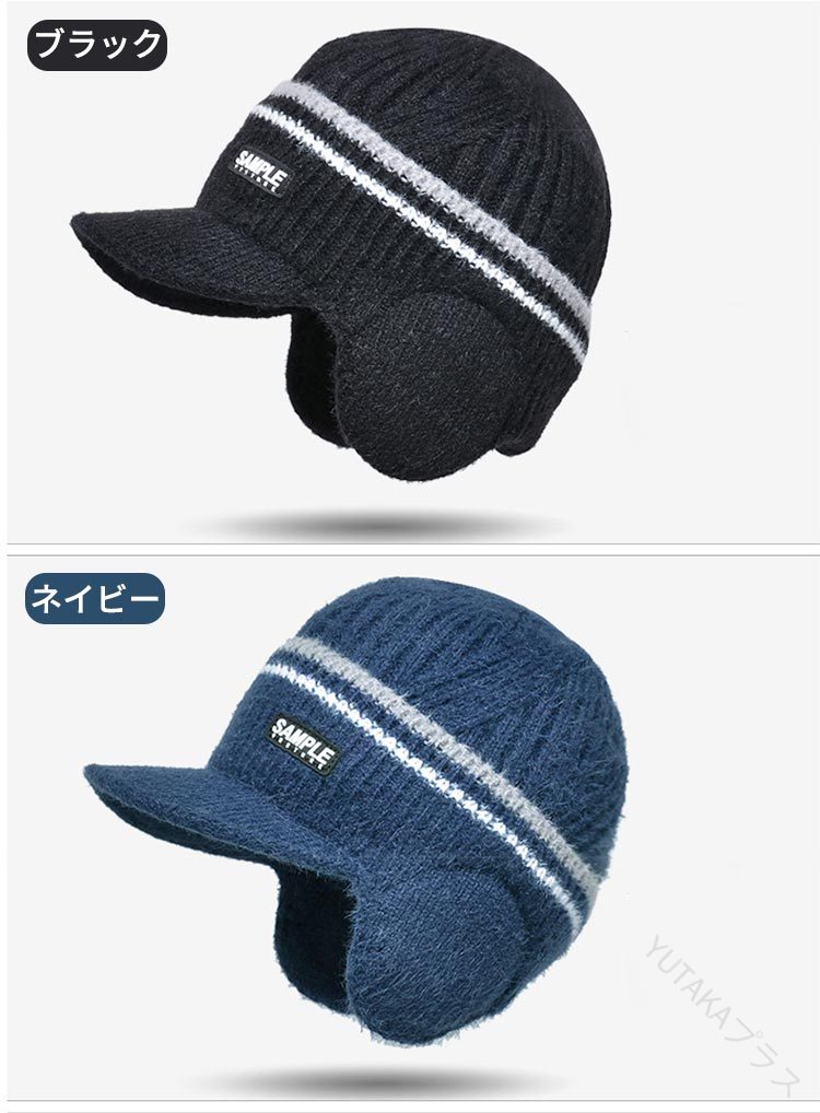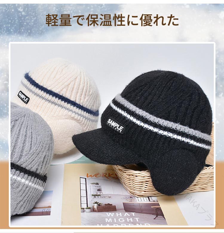 ニット帽 メンズ 耳あて付き つば付きニットキャップ 裏起毛ニット 毛糸帽子 厚手あったか防寒キャップ 秋冬防風保温 スノーアウトドア ゴルフ 通勤通学 小顔効果 クリスマスプレゼント ギフト対 帽子