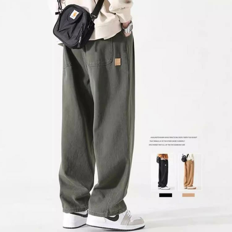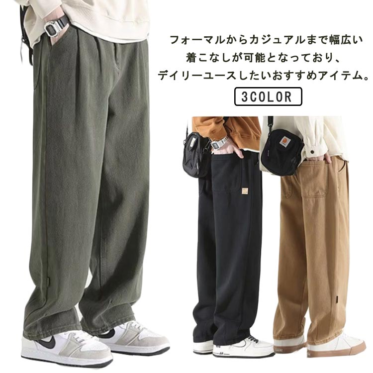ストレートパンツ ワイドパンツ カジュ メンズファッション 新登場! ブラック キャメル グリーン M L XL 2XL 3XL