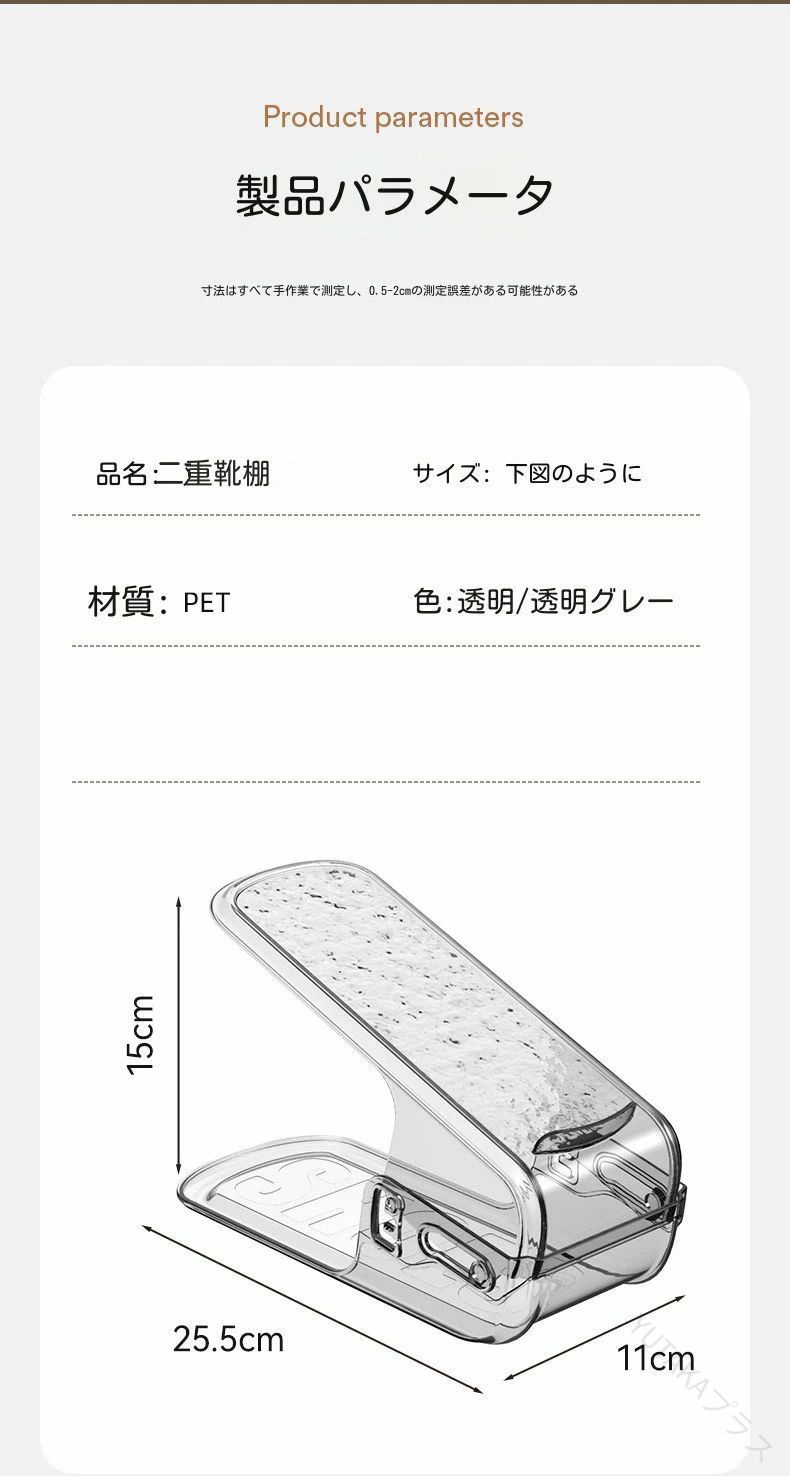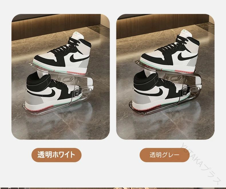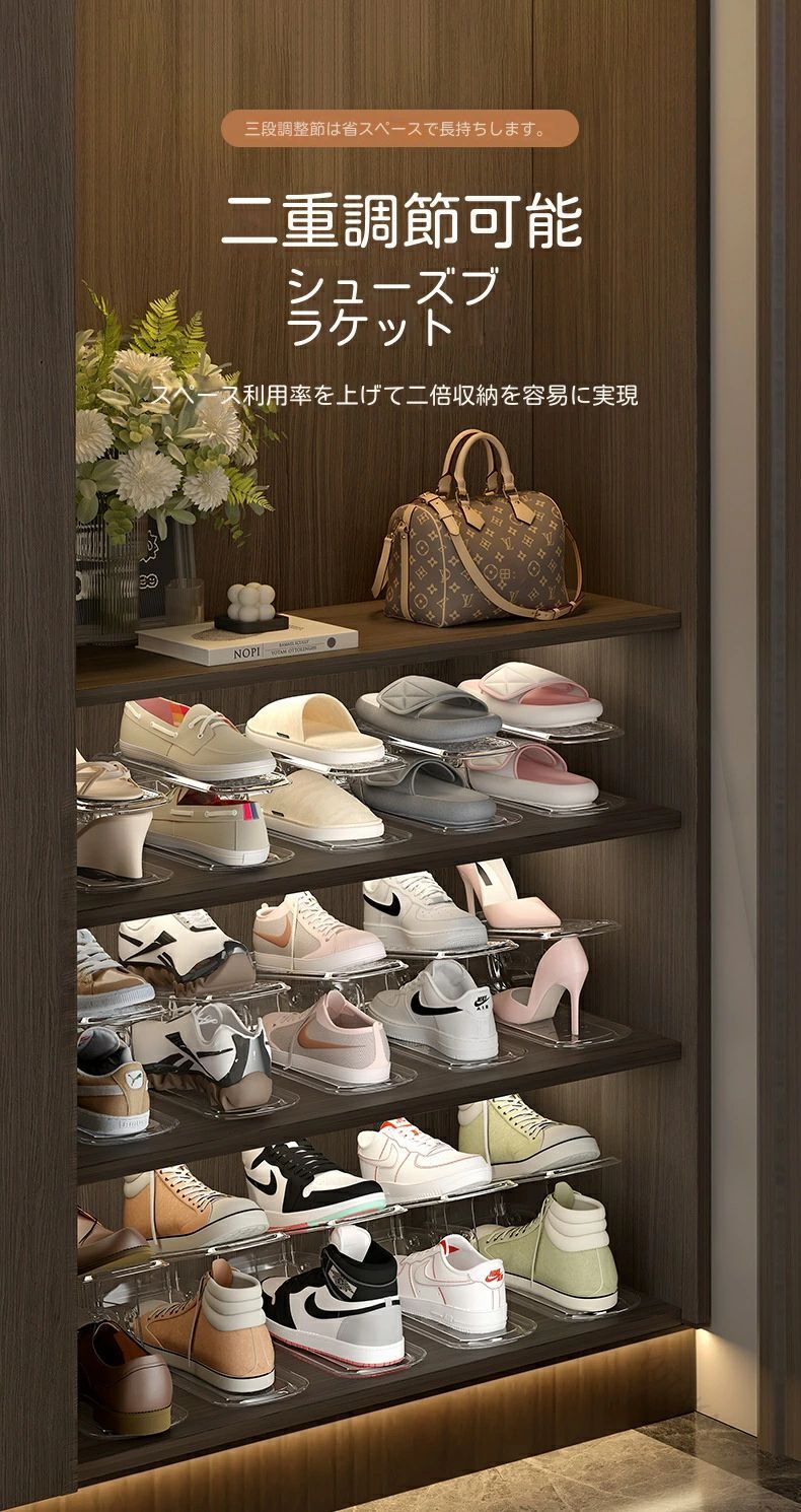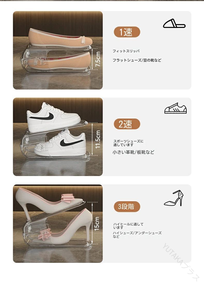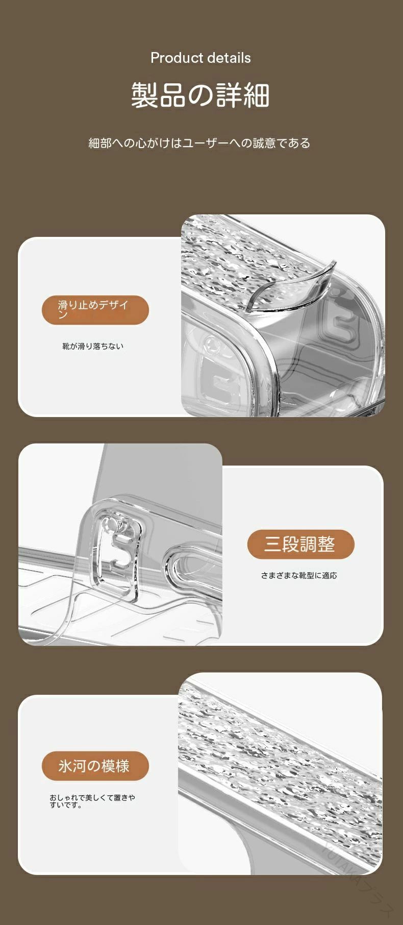 高さ調節できるシューズホルダー3段階仕 透明ホワイト 透明グレー 2個セット 6個セット 8個セット 12個セット