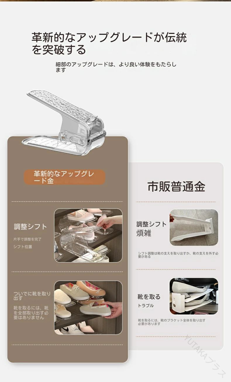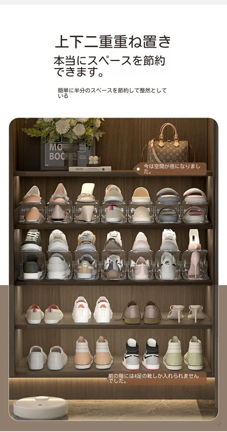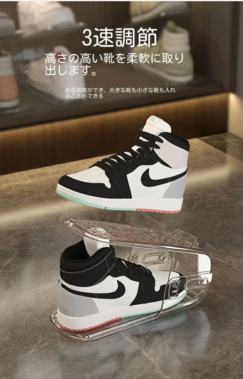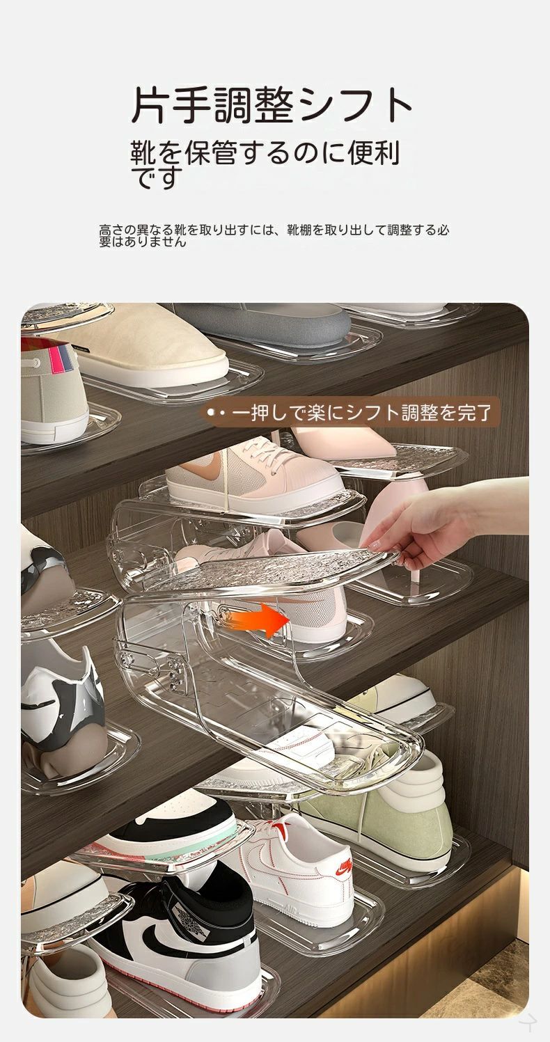 高さ調節できるシューズホルダー3段階仕 透明ホワイト 透明グレー 2個セット 6個セット 8個セット 12個セット