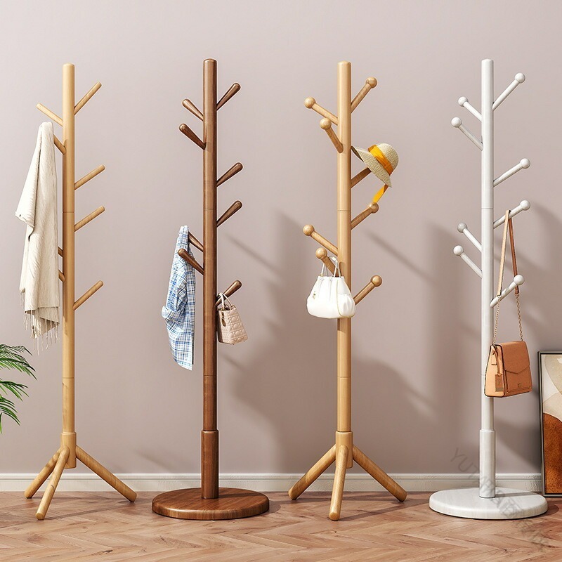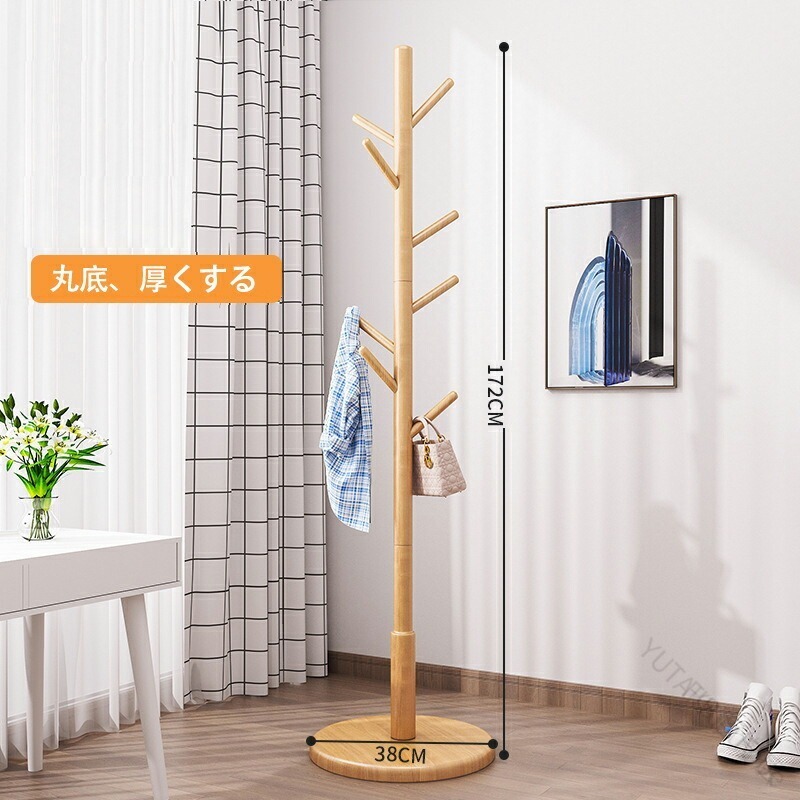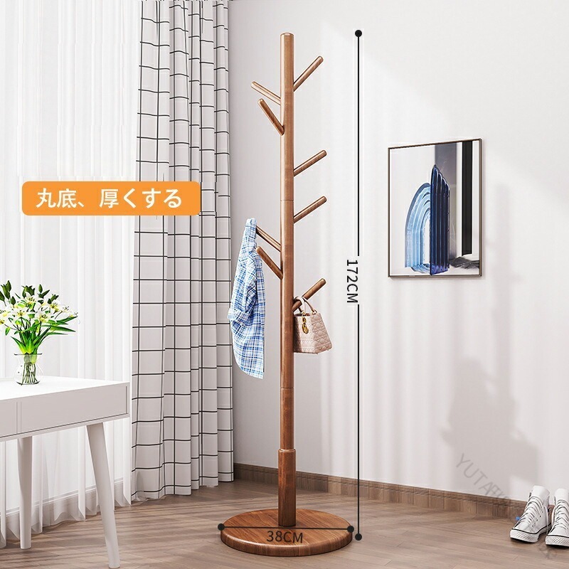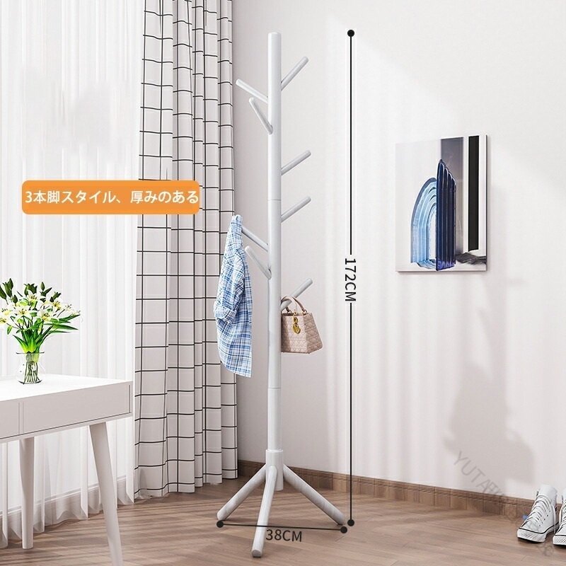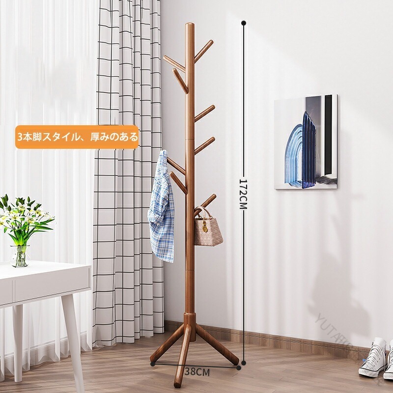 木製コートハンガー ハンガーラック 木 木目色 ウォールナット色 アイボリーホワイト 3本の脚と8つのフック ディスク8フック