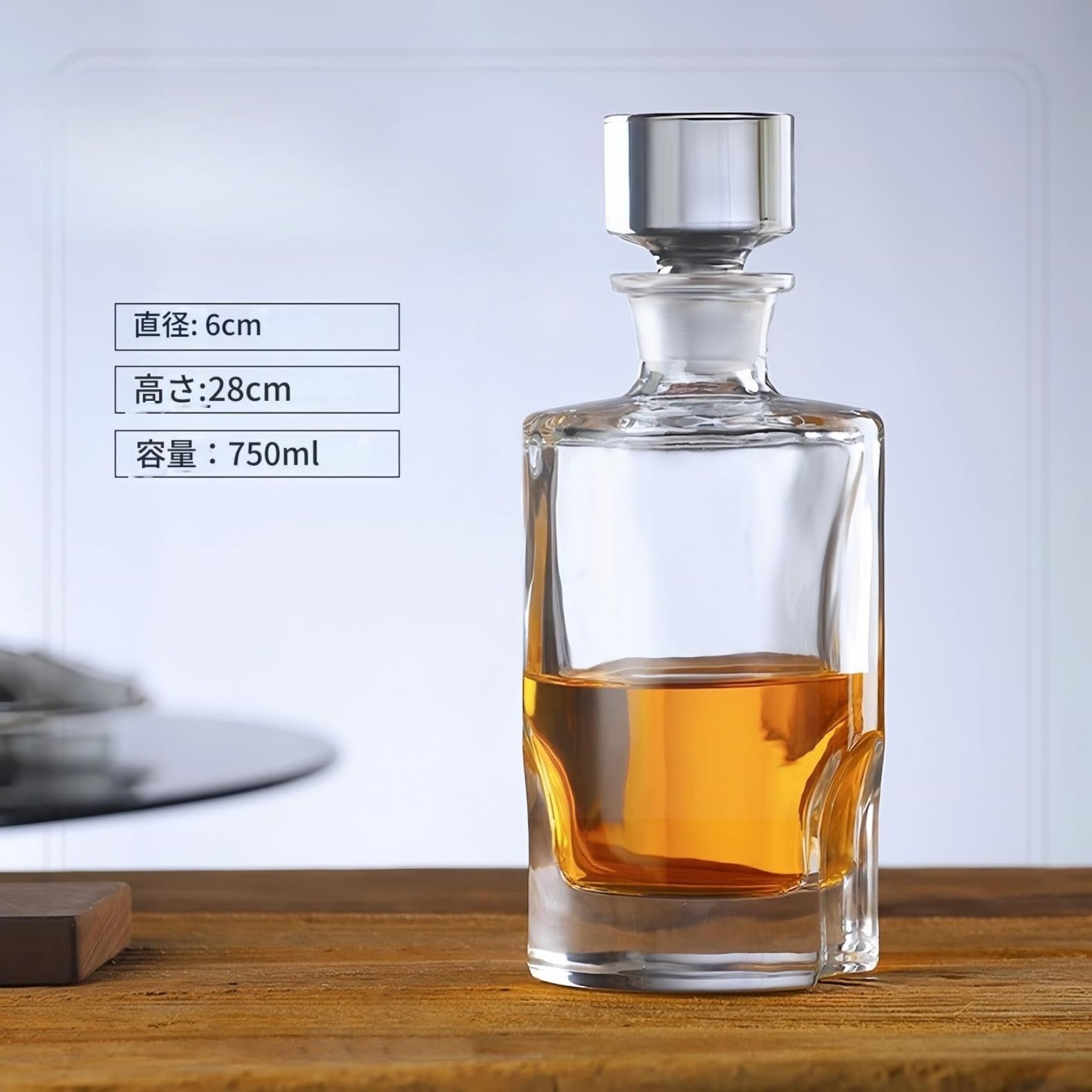 ウイスキーデキャンタ 750容量 無鉛ガラス製 ダイヤモンドカットデザイン | 高さ28 家庭 バー用装飾 テーパーグラスストッパー付き