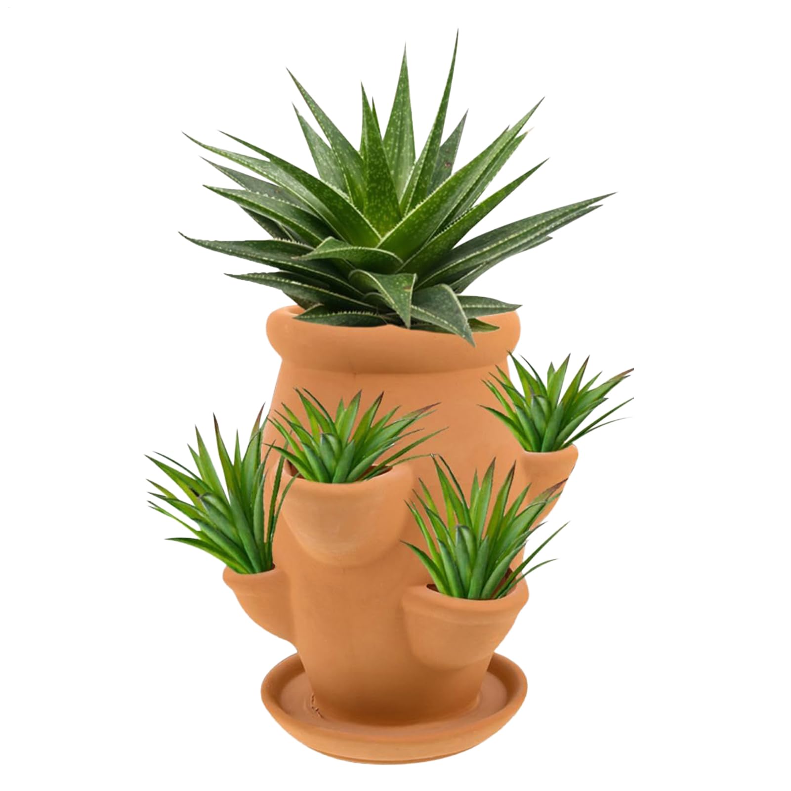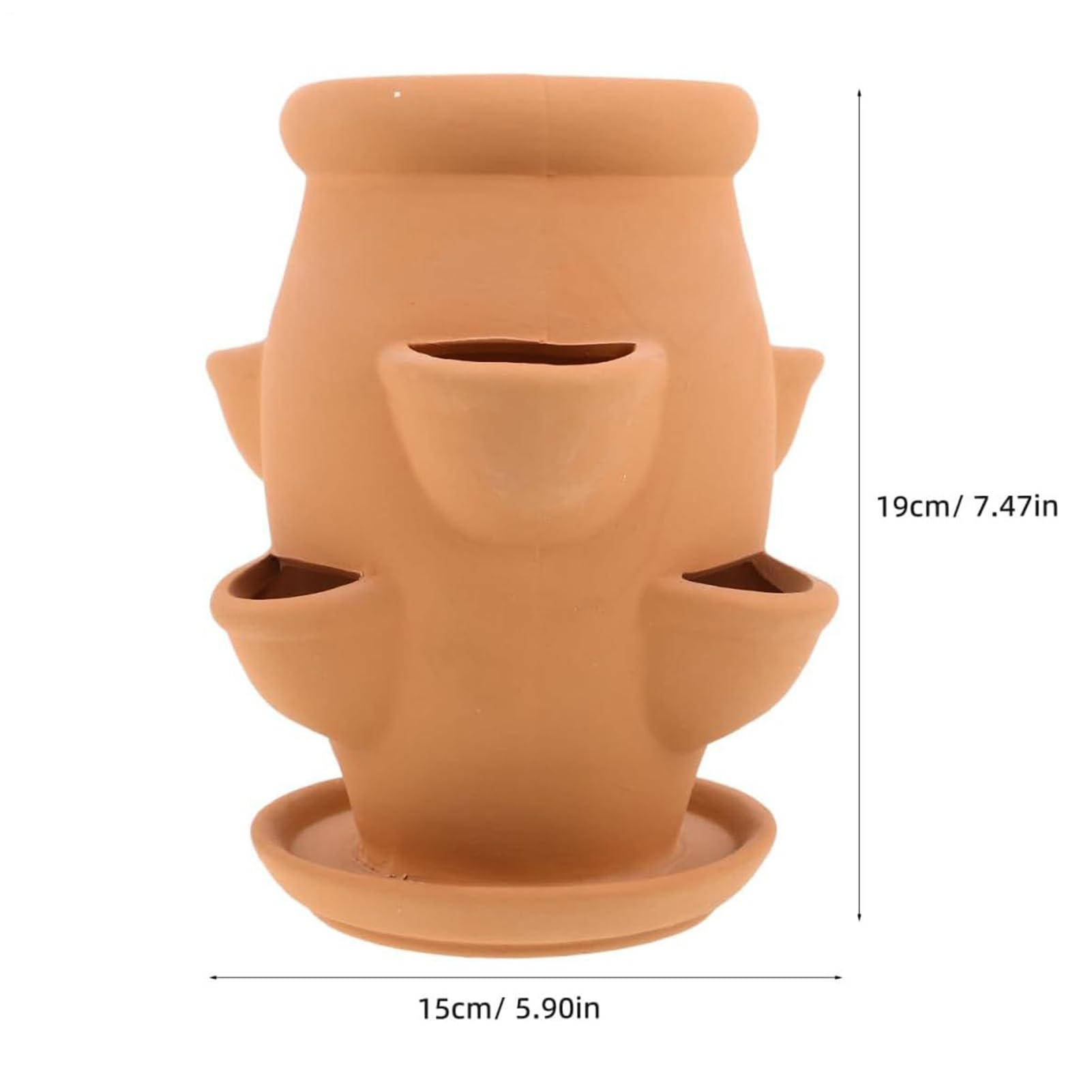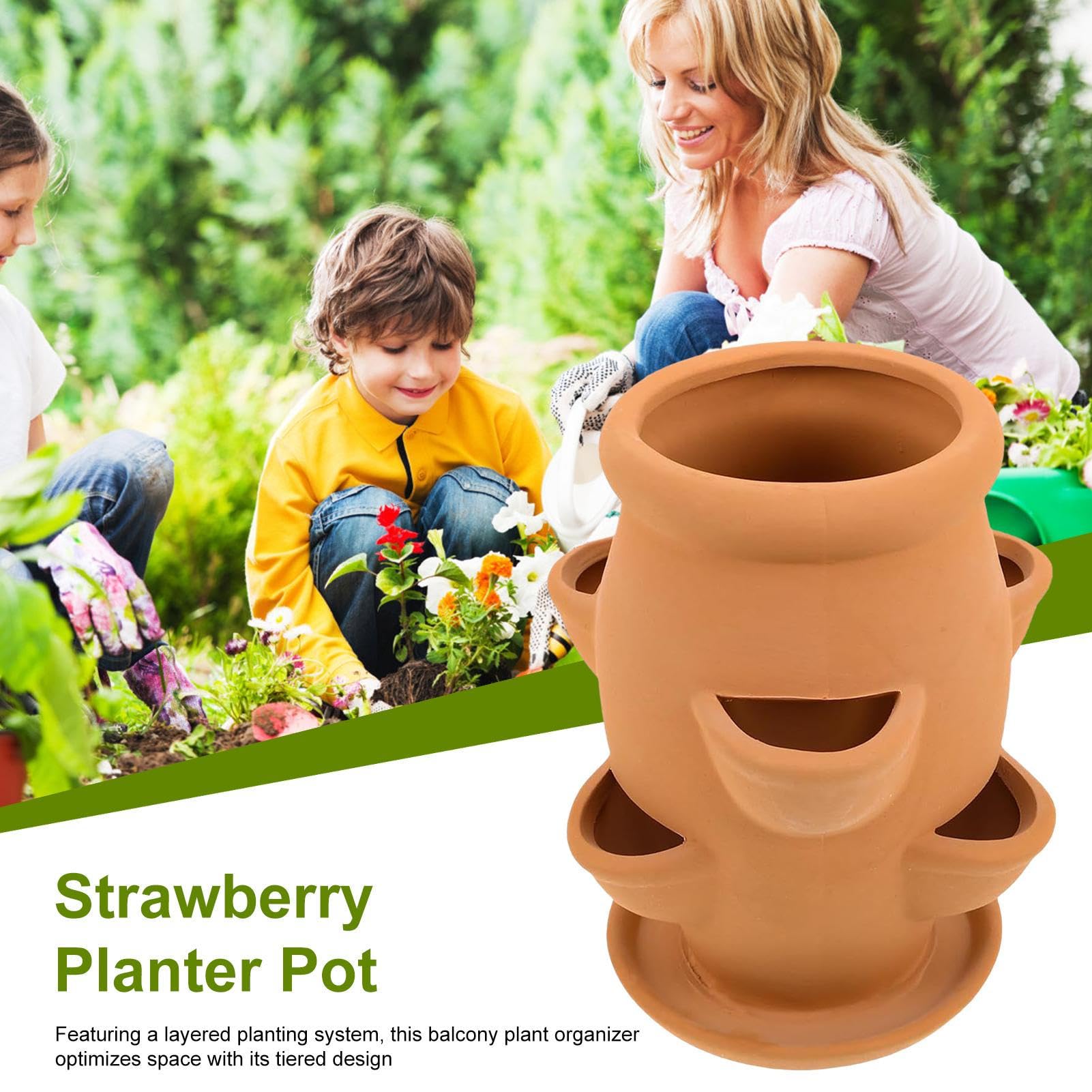 ストロベリープランター テラコッタ 植木鉢 イチゴ栽培バッグ 垂直に積み重ね可能なガーデンコンテナ | 通気性のある粘土素材 バルコニー テラス 屋外用 排水穴付き