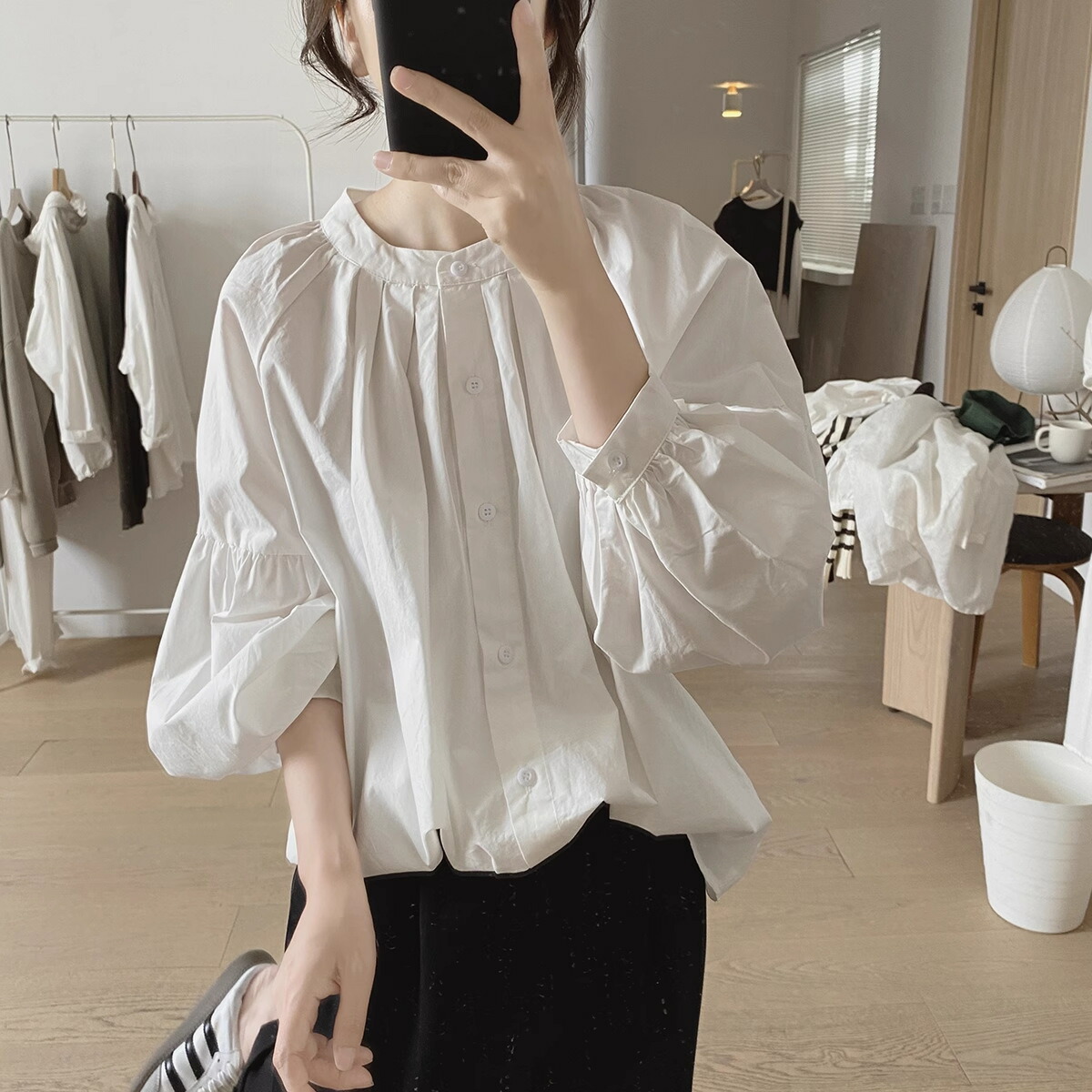 シフォンブラウス シアーブラウス ボリューム袖