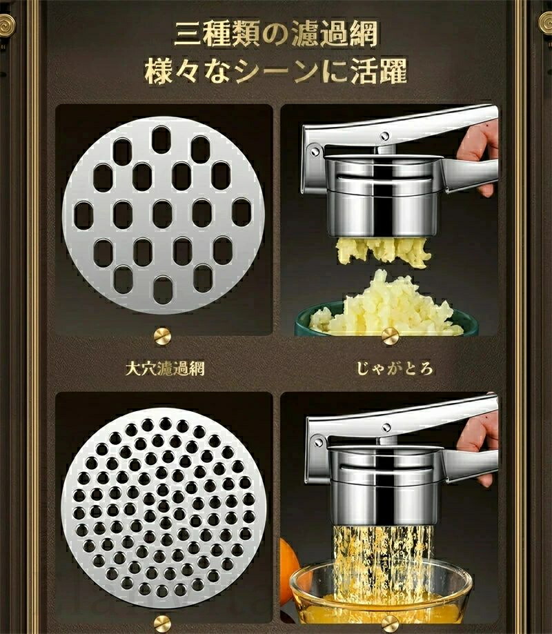 フルーツ絞り器 レモン絞り機 304ス キッチン用品 食器 調理器具 新登場! 底穴式(3枚の濾過網付き) 全身穴式