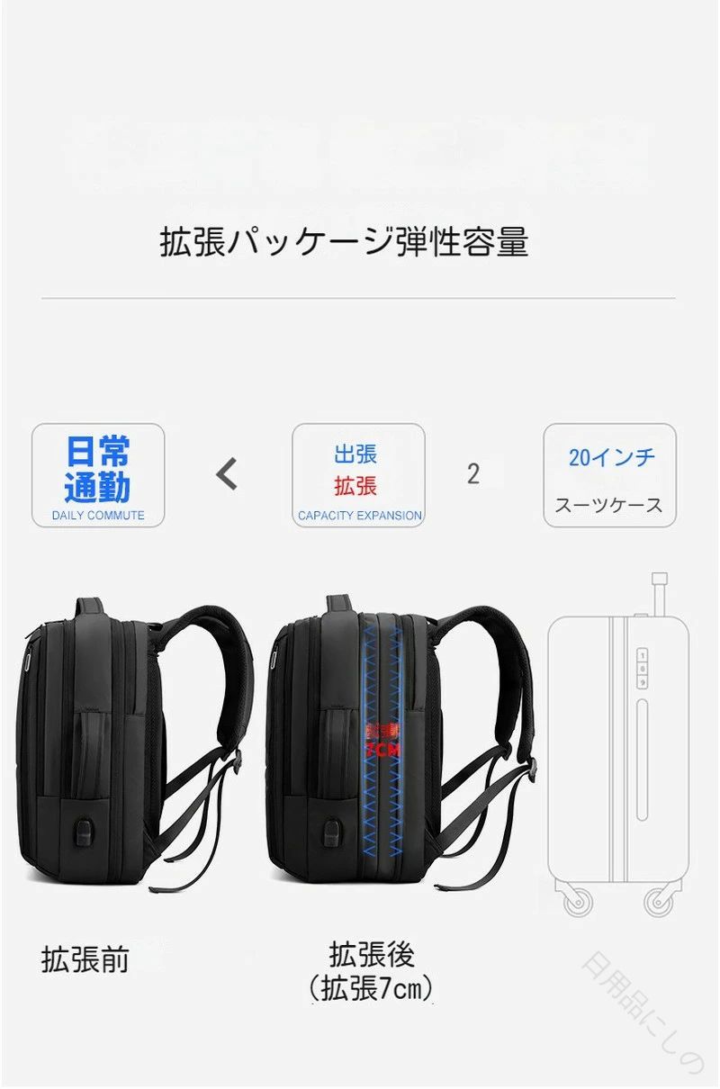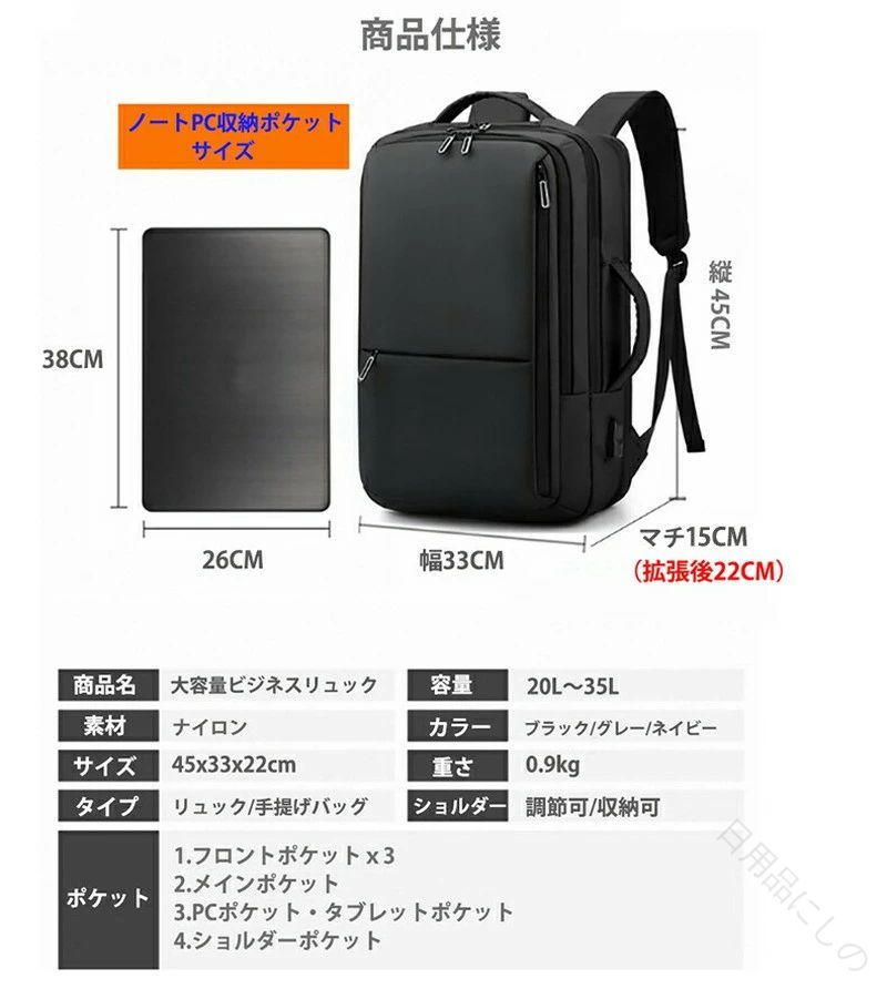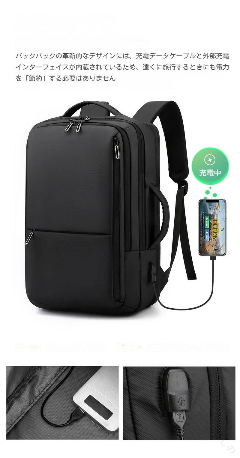 ビジネスリュック メンズ リュックサック 大容量 拡張機能 軽量 撥水加工 3wayバッグパック 15.6インチPC対応 通勤 通学 機内持ち込み対応 A4収納