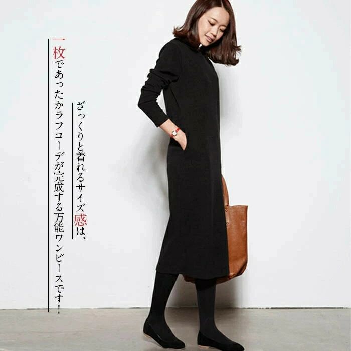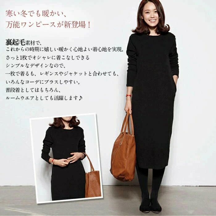 裏起毛 ロングワンピース ワンピース レディースファッション 超目玉商品 黒 グレー M L XL 2XL 3XL