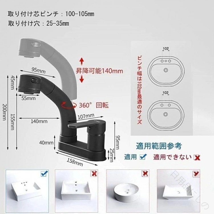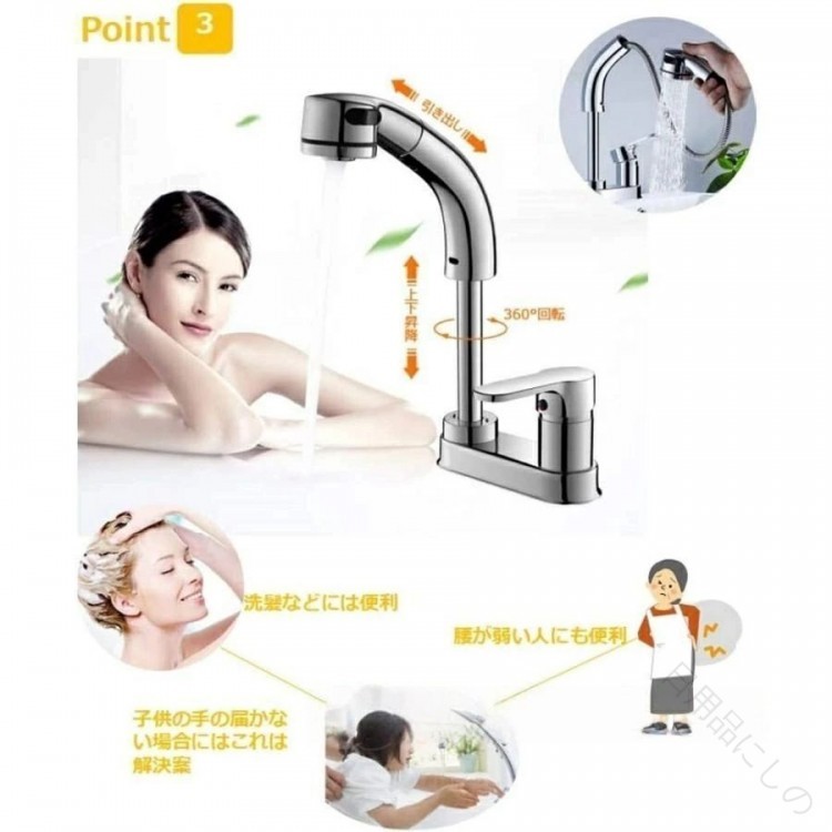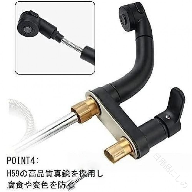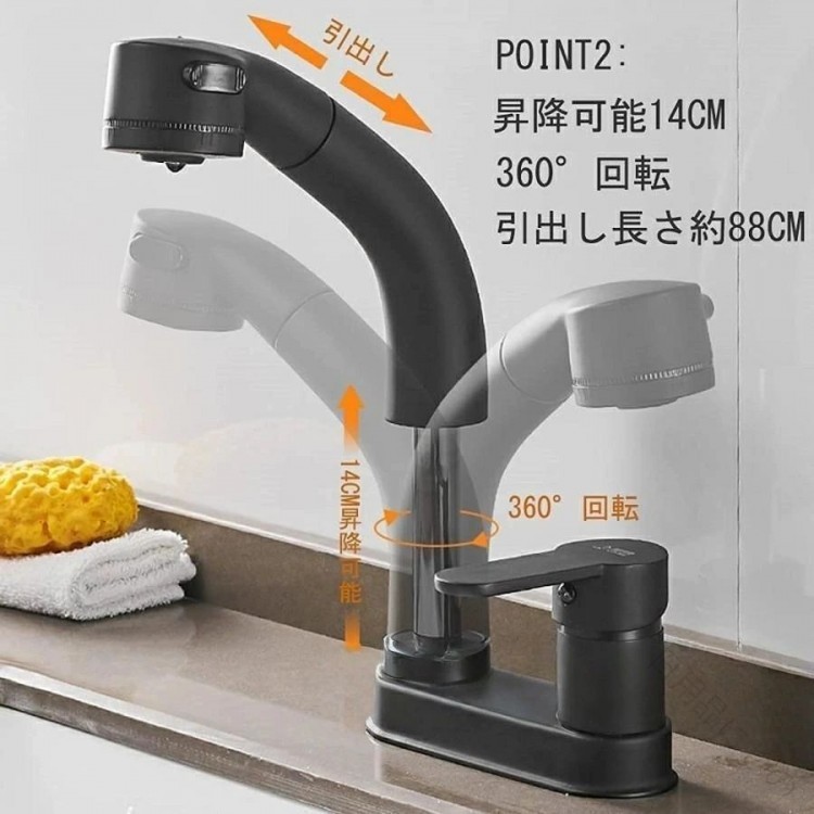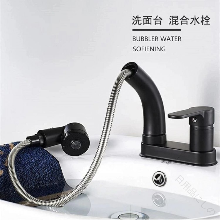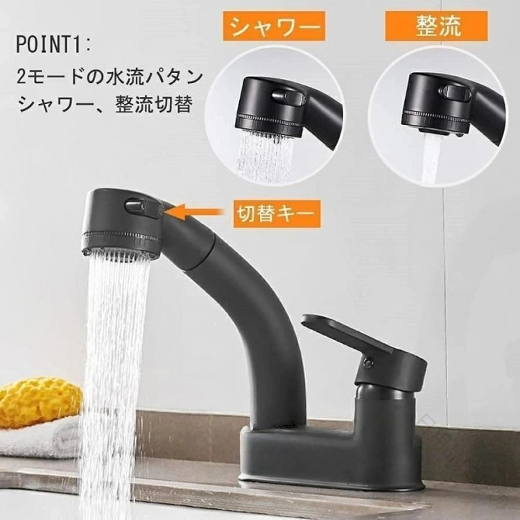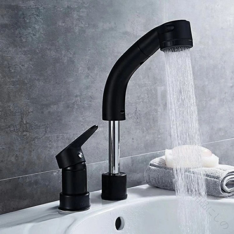 洗面台蛇口 混合水栓 ホース引き出し式 シルバー ブラック