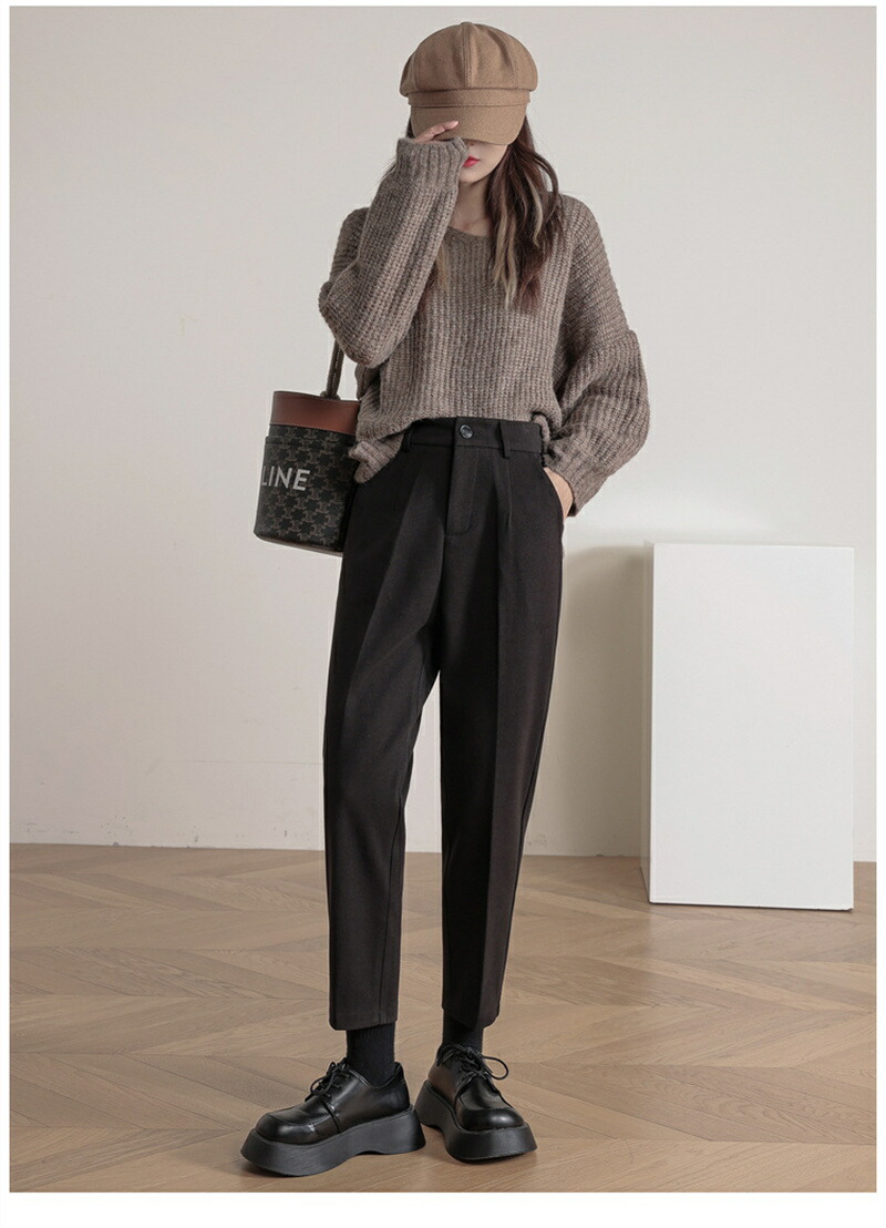 ロングパンツ レディース 冬 ウール調 ボトムス パンツ 新登場! コーヒー ブラック S M L XL 2XL