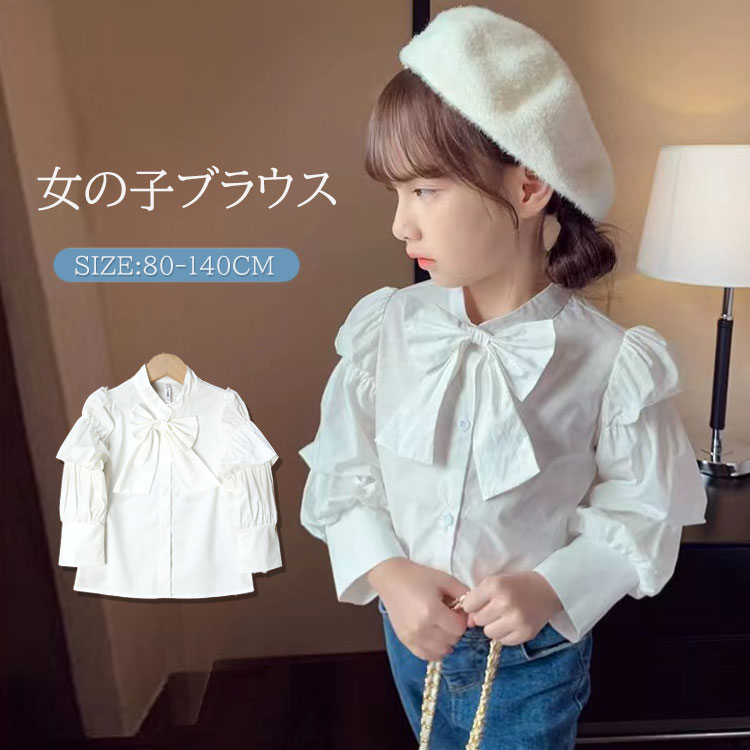 女の子 リボンブラウス 入学式 卒業式 キッズ トップス シャツ ブラウス 新作 80cm 90cm 100cm 110cm 120cm 130cm 140cm