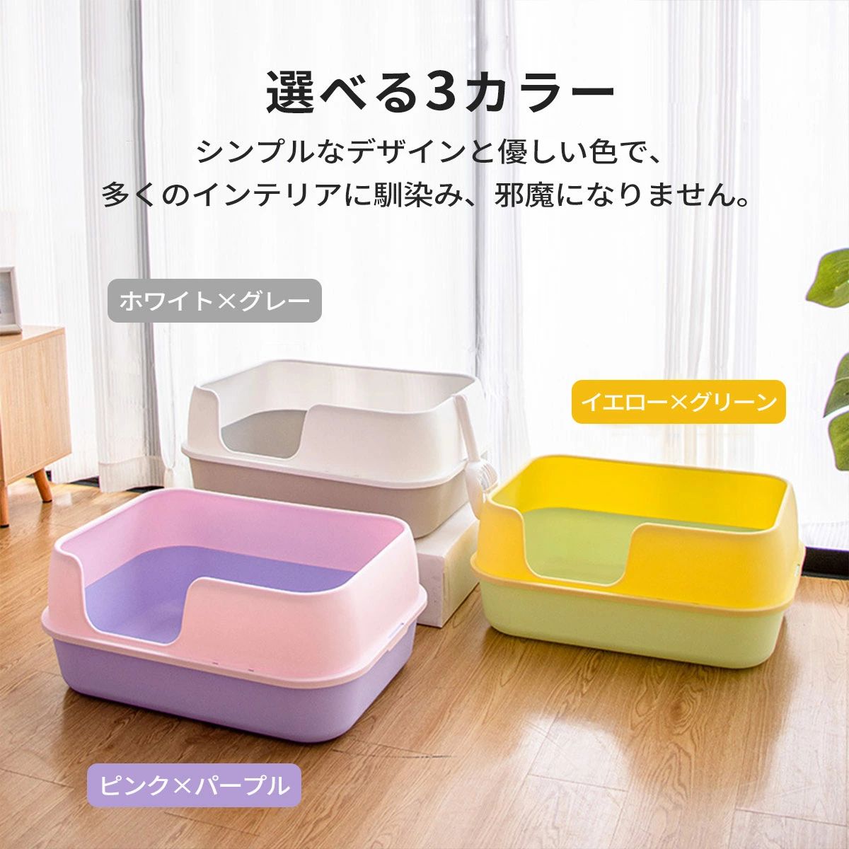 猫トイレ 飛び散らない ハーフカバー ペット ペットグッズ 続々入荷中 ホワイト×グレー ピンク×パープル イエロー×グリーン