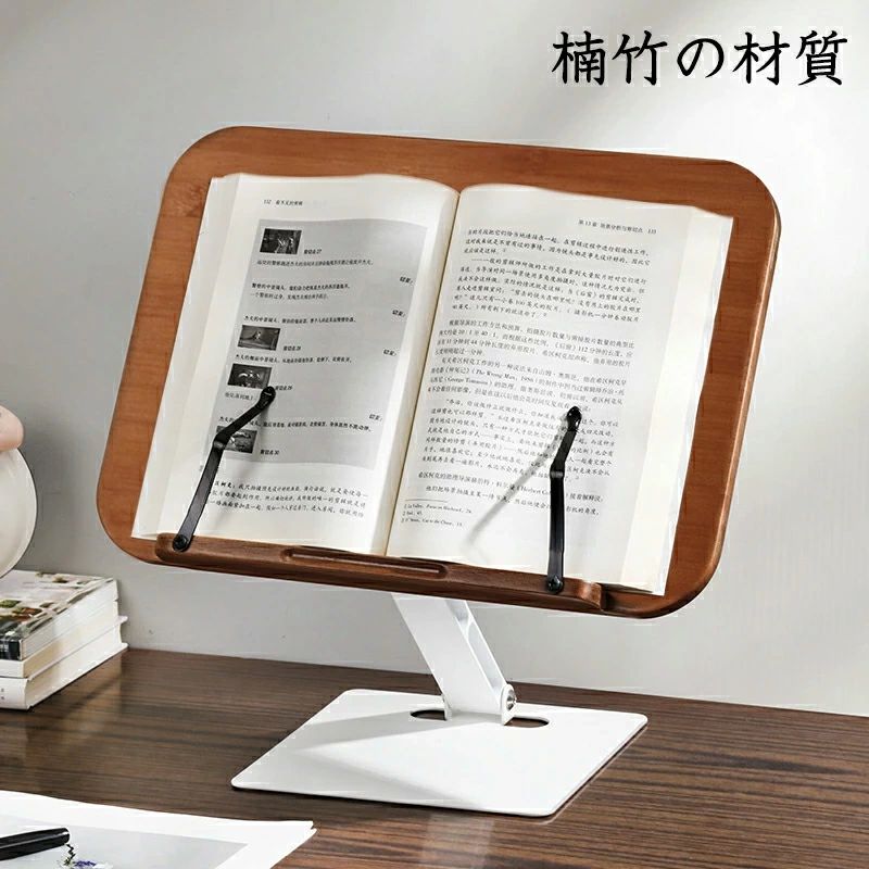 書見台 卓上 木製 ブックスタンド 角 オーク材 楠竹の材質