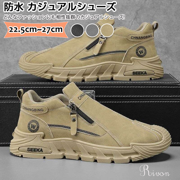 スニーカー メンズ 防水カジュアルシュ 靴 人気 グレー カーキ ブラック 39(内寸24.5cm) 40(内寸25cm) 41(内寸25.5cm) 42(内寸26cm) 43(内寸26.5cm) 44(内寸27cm)