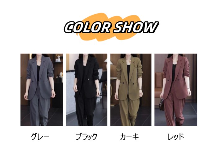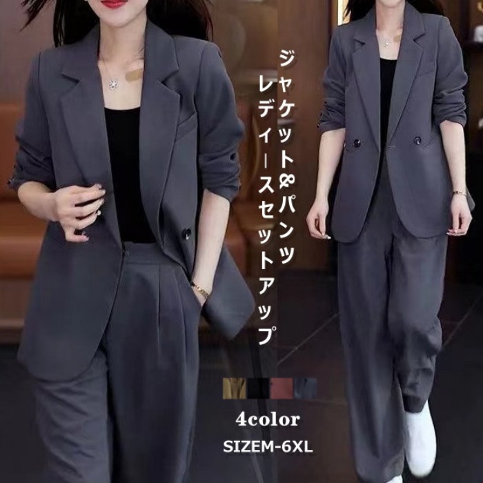 レディース セットアップ スーツ風ジャ スーツ セットアップ パンツスーツ 特集 グレー ブラック カーキ レッド M L XL 2XL 3XL 4XL 5XL 6XL