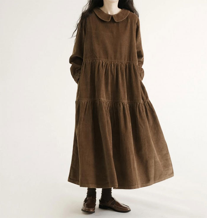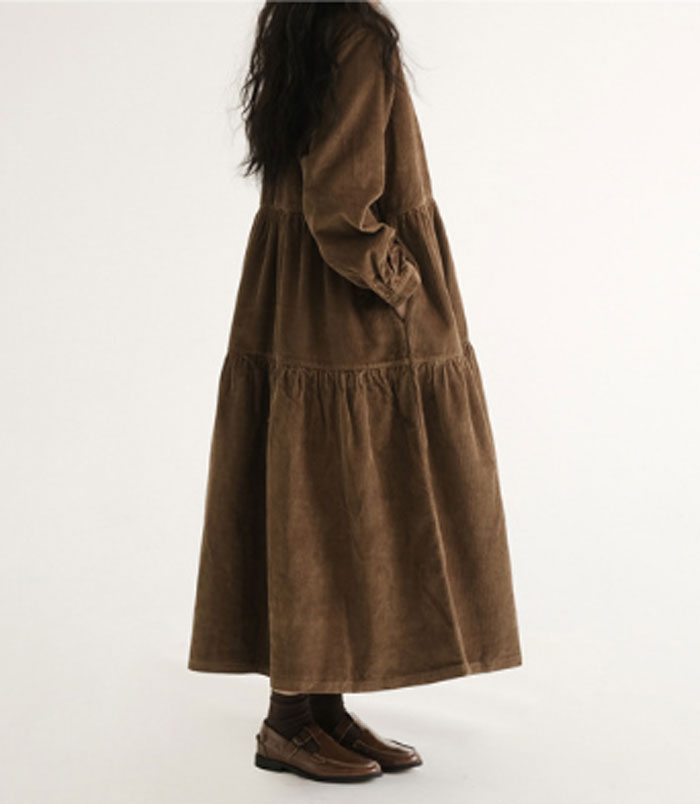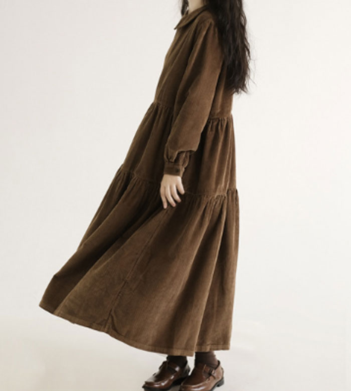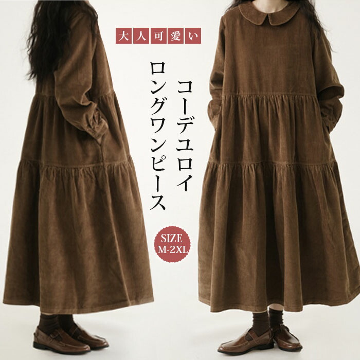 ロングワンピース コーデュロイ レディ レディースファッション 続々登場 M L XL XXL