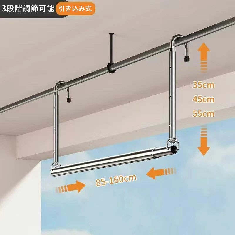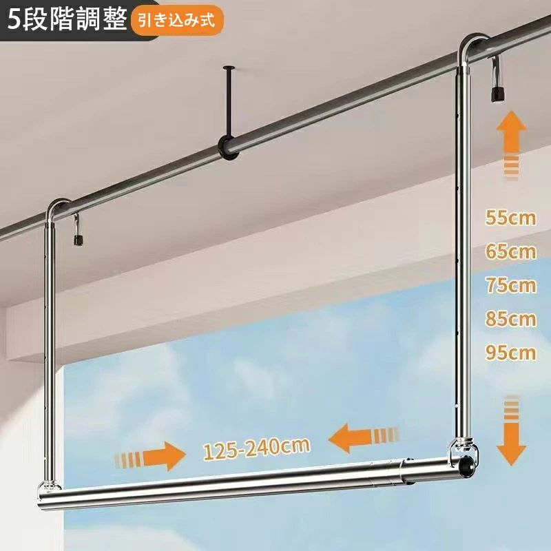 ステンレス 物干し竿 布団干し 室内 屋外 伸縮式 ものほし竿 多機能 物干し 軽い 大容量 収納が便利 折りたたみ式 洗濯物干し 室内物干し突っ張り物干し 壁掛け式 防風 防水 防錆性能 省スペース