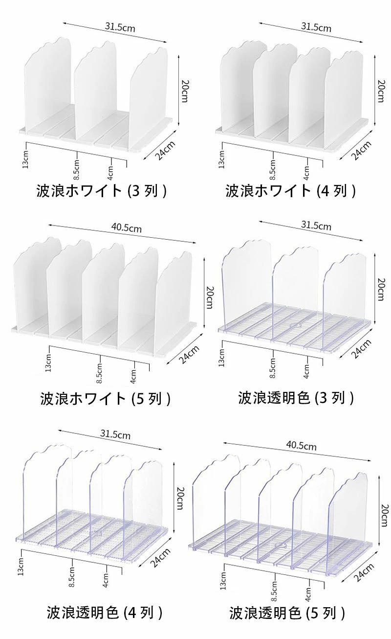 バッグ収納スタンド 3 4 5列 カバ ホワイト(3列) ホワイト(4列) ホワイト(5列) 透明色(3列) 透明色(4列) 透明色(5列) 波浪ホワイト(3列) 波浪ホワイト(4列) 波浪ホワイト(5列) 波浪透明色(3列) 波浪透明色(4列) 波浪透明色(5列)