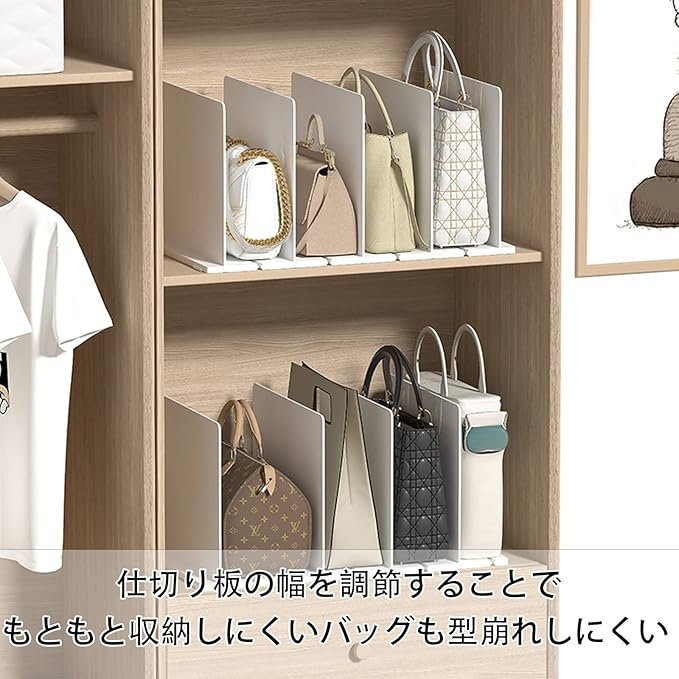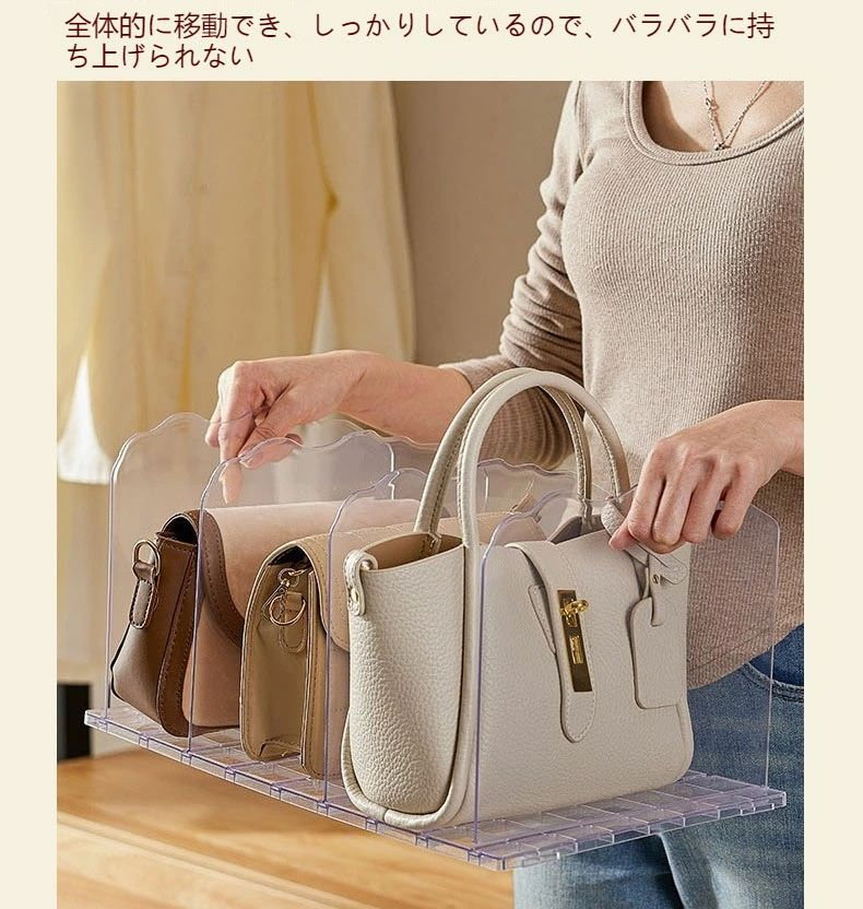 バッグ収納スタンド 3 4 5列 カバン 収納 鞄 スマート クローゼット収納 調整できる仕切り幅 台座連結可能 卓上収納ラック書類ホルダー キッチン収納 押入れ収納 ホワイト 透明 便利