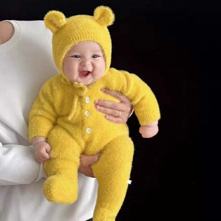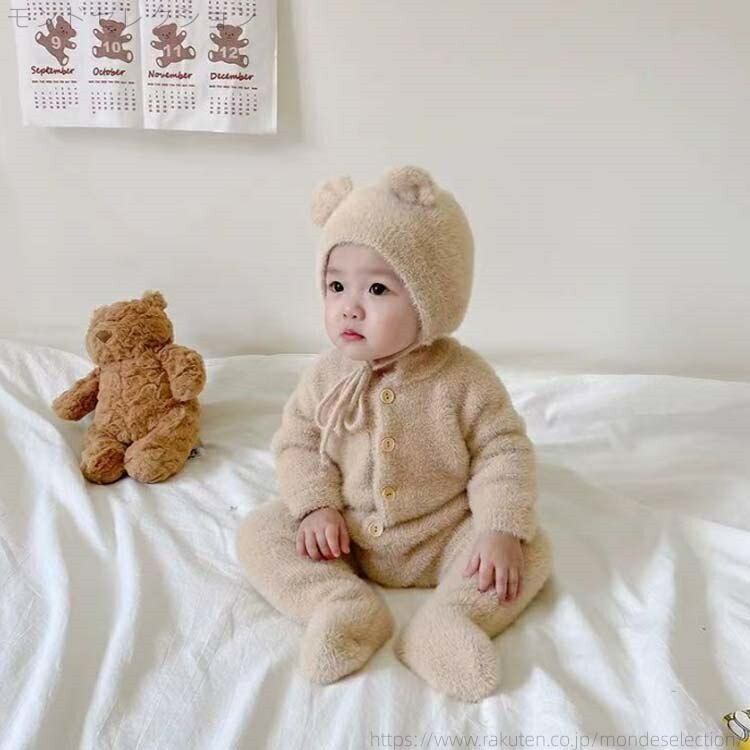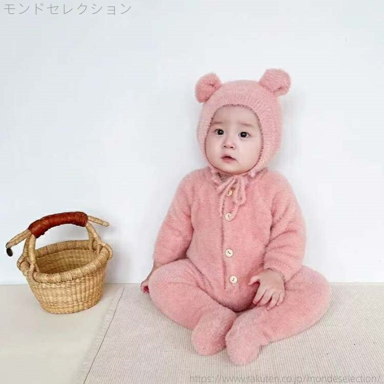 くまちゃん 熊耳 ロンパース 長袖 動 キッズ ベビー マタニティ 特集 ホワイト ブラウン イエロー ピンク グレー 66 73 80 90 100