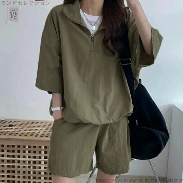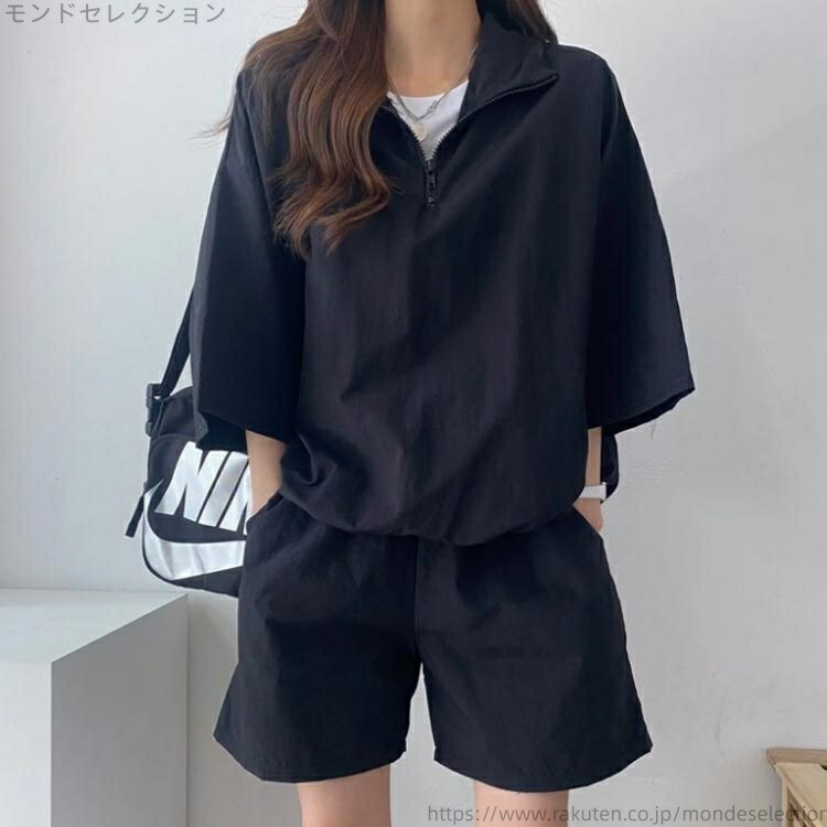 ジャージ 2点セット ショート丈パンツ スーツ セットアップ パンツスーツ 特集 ブラック グリーン ブルー M L XL 2XL 3XL