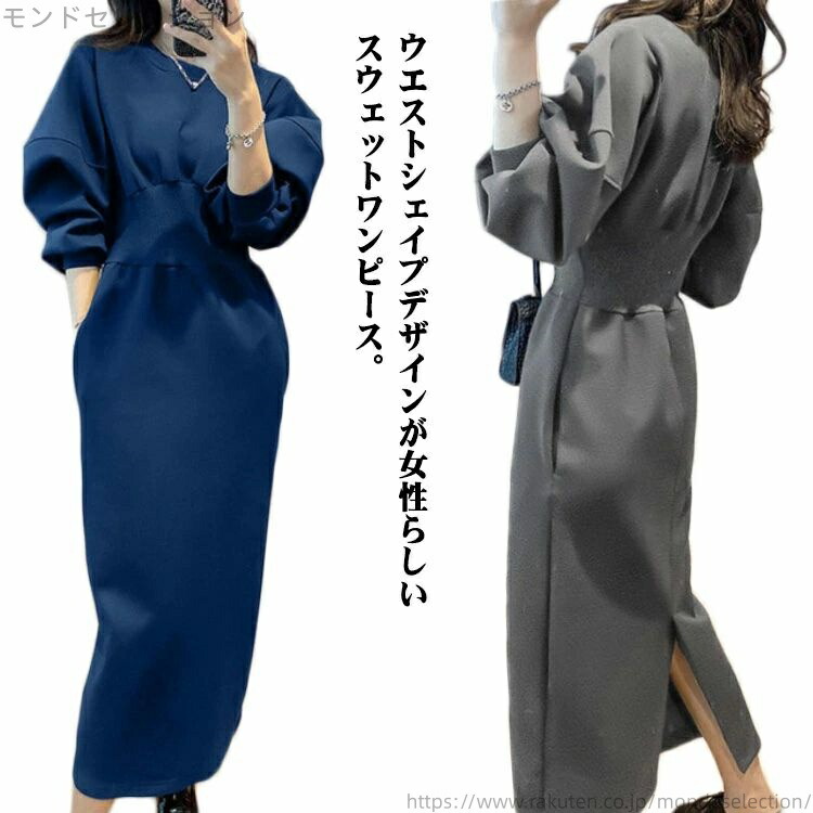 トレーナー ワンピース ハイウエスト レディースファッション 新登場! ブルー グレー S M L XL 2XL