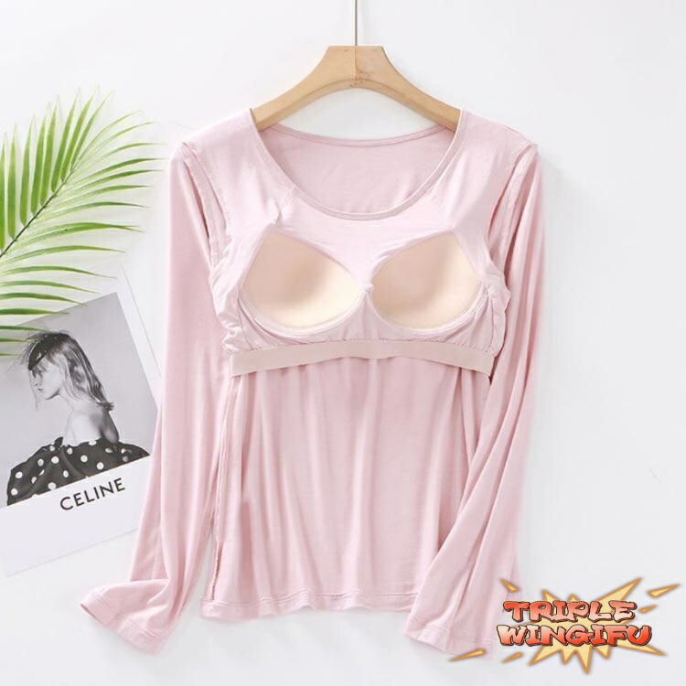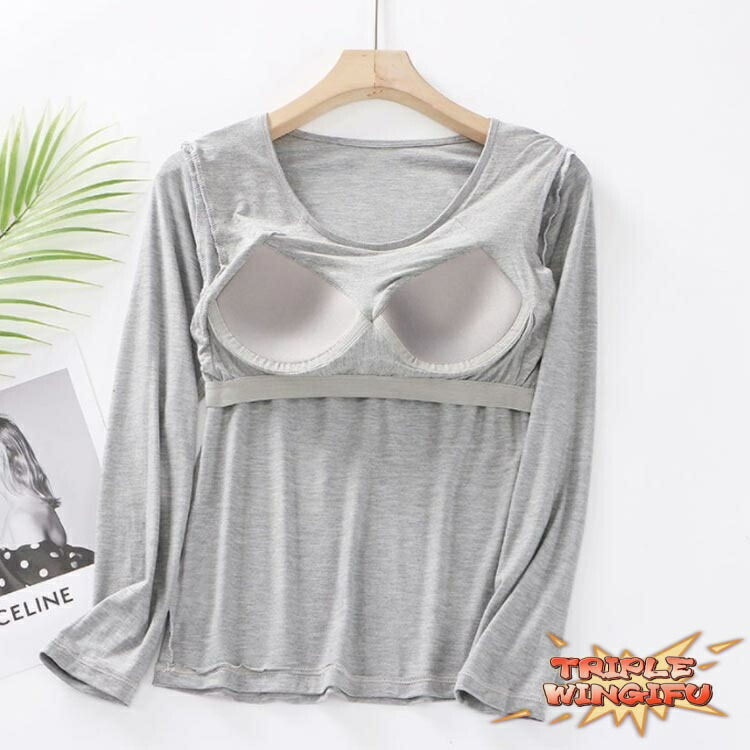 パット付長袖Tシャツ ラウンドネック レディースファッション 特集 ブラック グレー レッド ピンク パープル M L XL 2XL 3XL