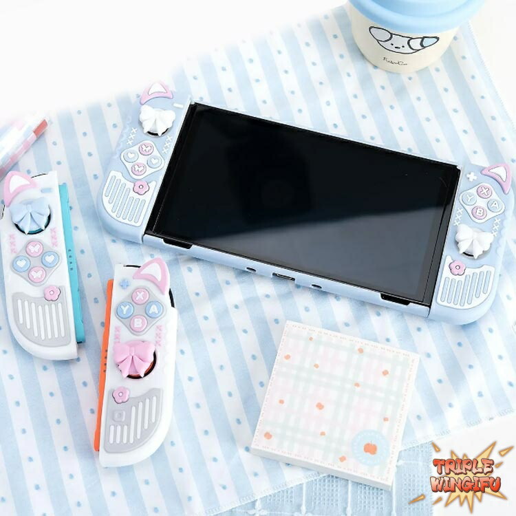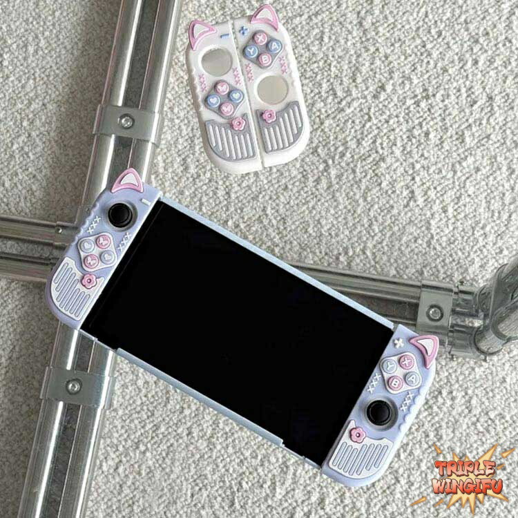 シリコン素材 ケース コントローラー用 ホワイト ブルー 2/スティックカバー付き OLED/スティックカバー付き
