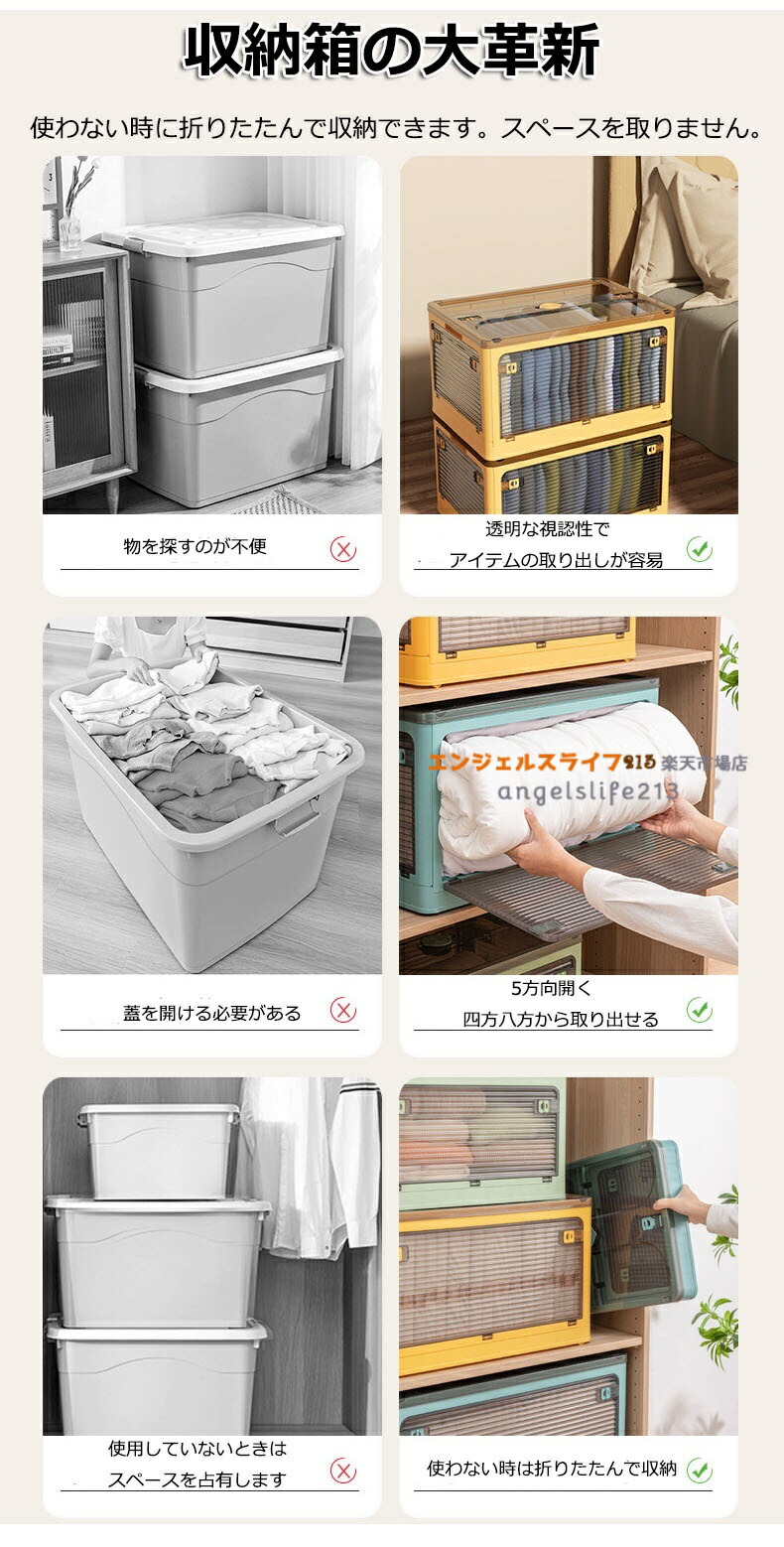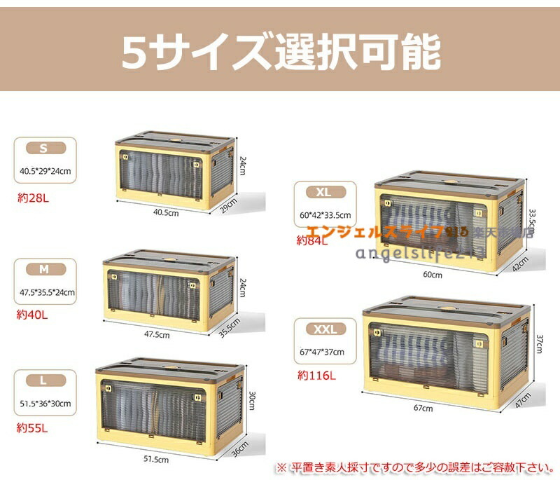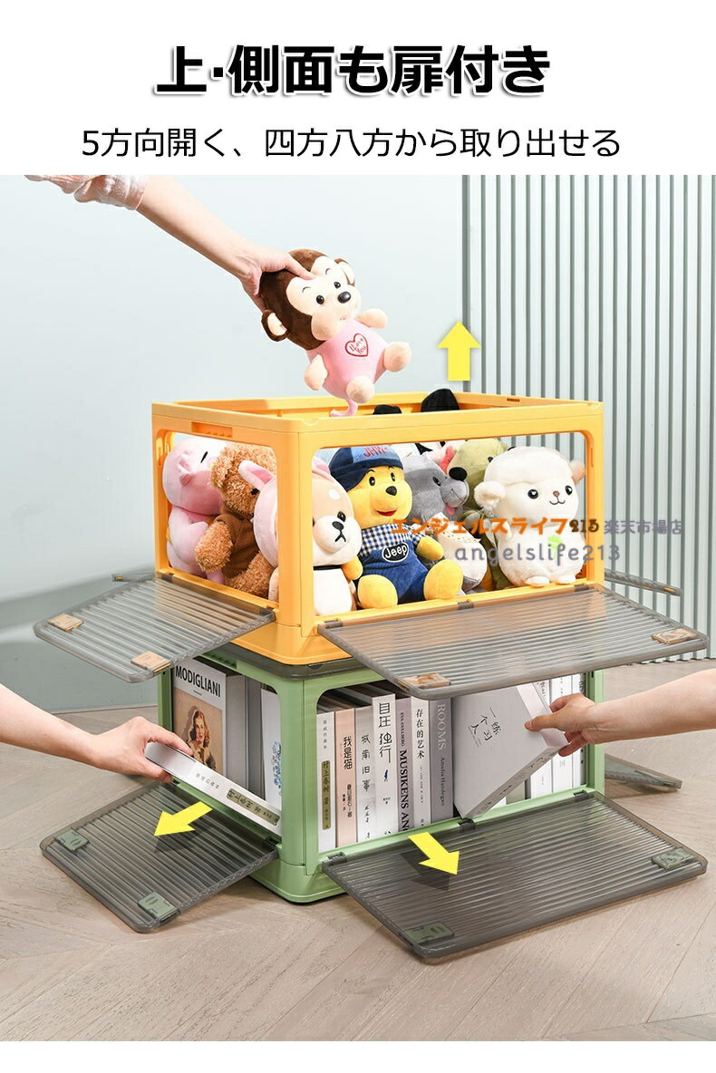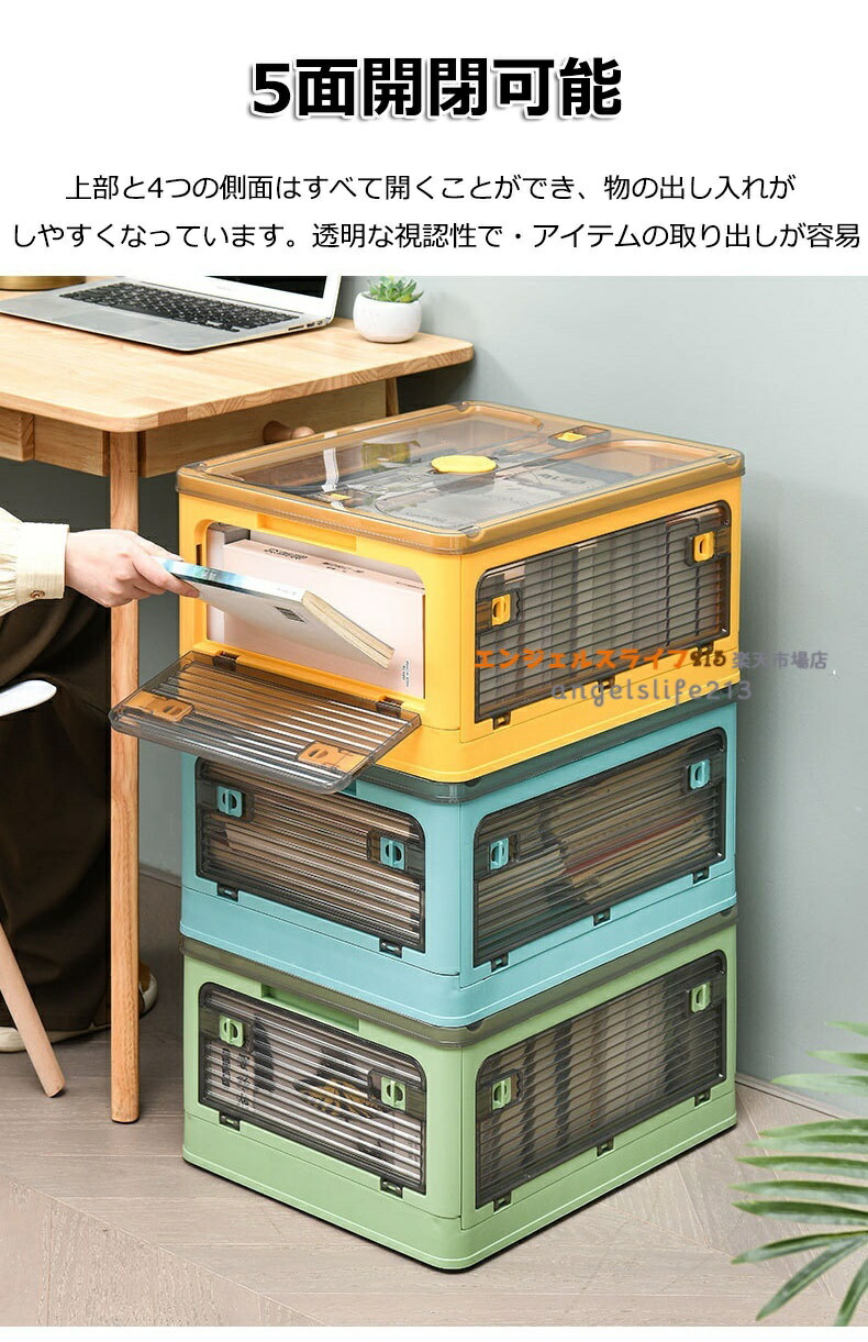 収納ボックス 折りたたみ 5面開閉 蓋 ホワイト グリーン イエロー ブルー S【40.5*29*24cm】 M【47*35.5*24cm】 L【51.5*36*30cm】 XL【60*42*33.5cm】 XXL【67*47*37cm】