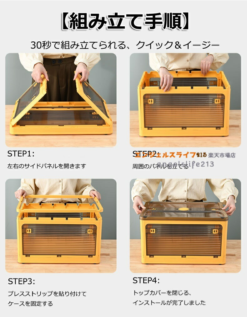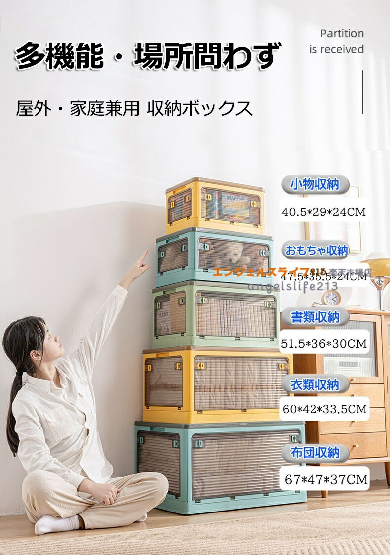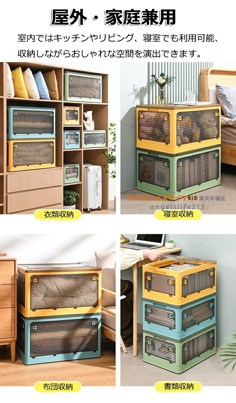 収納ボックス 折りたたみ 5面開閉 蓋 ホワイト グリーン イエロー ブルー S【40.5*29*24cm】 M【47*35.5*24cm】 L【51.5*36*30cm】 XL【60*42*33.5cm】 XXL【67*47*37cm】