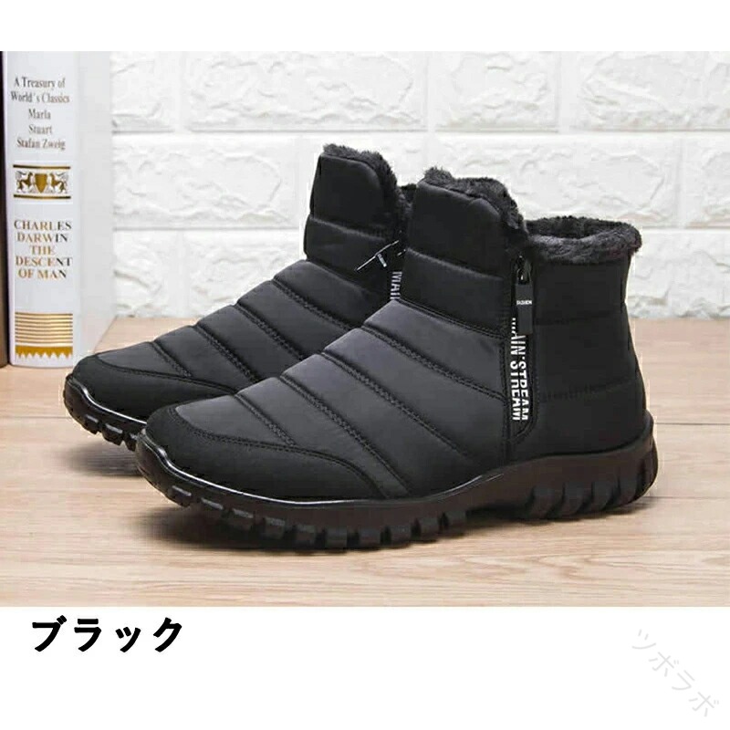 スノーブーツ メンズ ムートン メンズブーツ 裏起毛 冬靴 保温 人気 防寒靴 メンズ冬靴 起毛 サイドジップ 靴 シューズ 防滑 防水 防寒 通勤 撥水 寒冷地 あったか ブラック 25 アウトドア