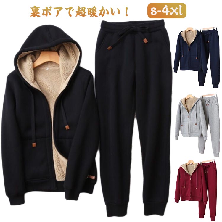 裏ボア スウェット セットアップ レデ レディースファッション 早い者勝ち ブラック上下セット グレー上下セット ネイビー上下セット レッド上下セット S M L XL 2XL 3XL 4XL