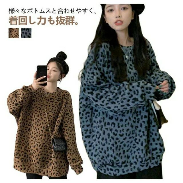 カジュアル トップス レオパード柄 冬 レディースファッション 特集 ダークグレー ブラウン L XL 2XL 3XL 4XL