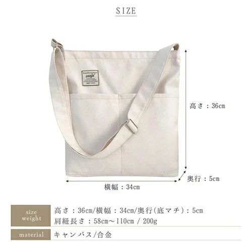 通学 通勤 エコバッグ バック ユニセックス メンズ ショルダーバッグ 布 肩がけ 斜めがけ 丈夫 シンプル ートPC ファスナー付き
